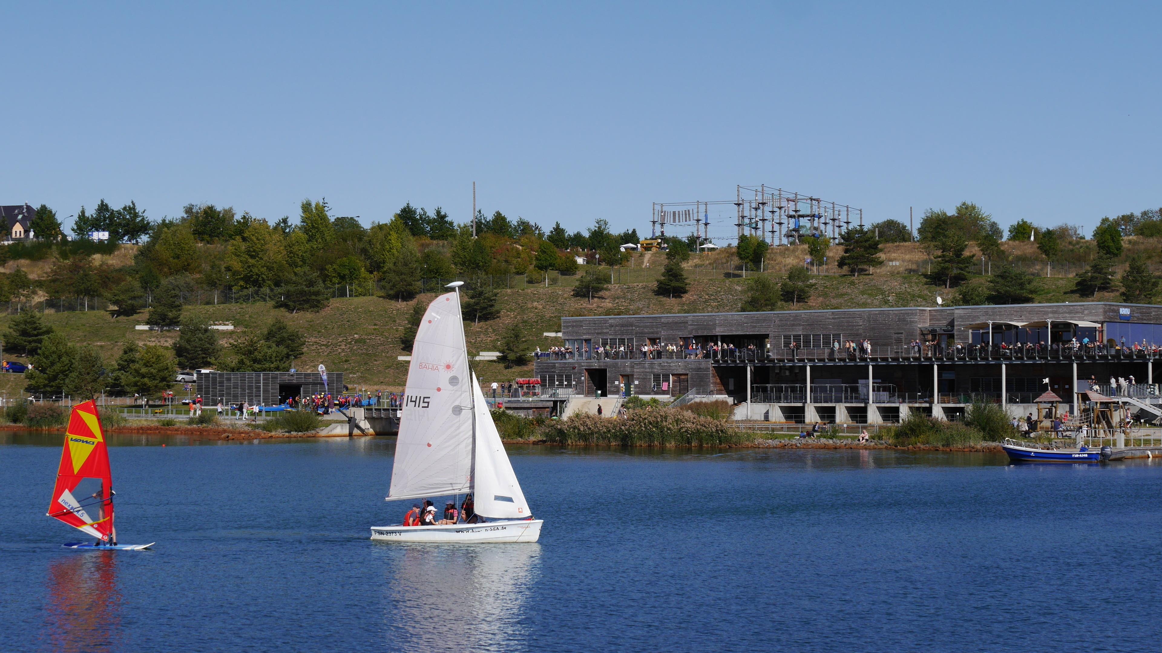 - Cospudener See: Baden, Bootsverleih, Personenschifffahrt, Gastronomie, Grinseln (schwimmende Grillinseln), Tauchen, Tauschschule, Surfen, Surfschule, Sauna im See, Beach-Volleyball, Aussichtsturm Bistumshöhe, Angeln, Wander- und Fahrradrundweg, Golfplatz