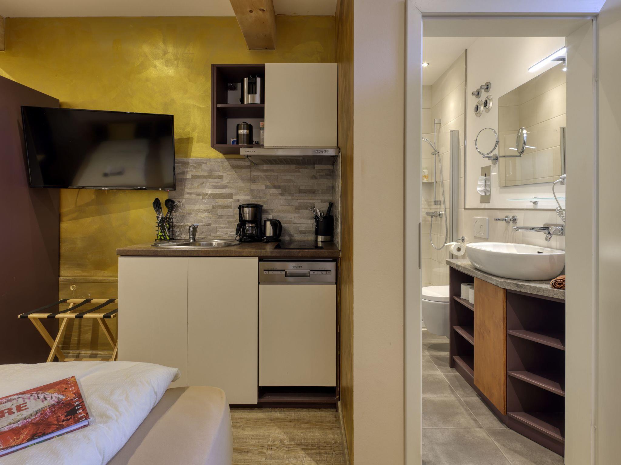 Quiet, cosily furnished superior studio with double bed on the upper floor of the Hofstallung with a total of 6 flats and the feed room.