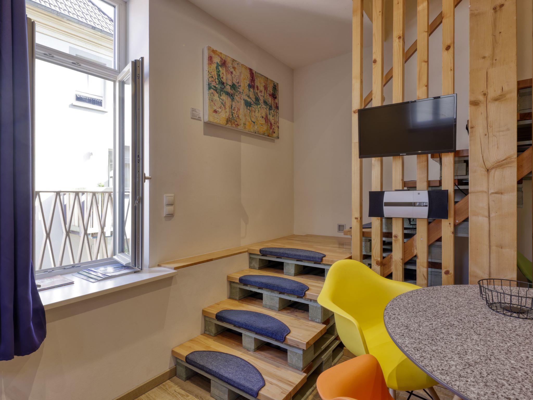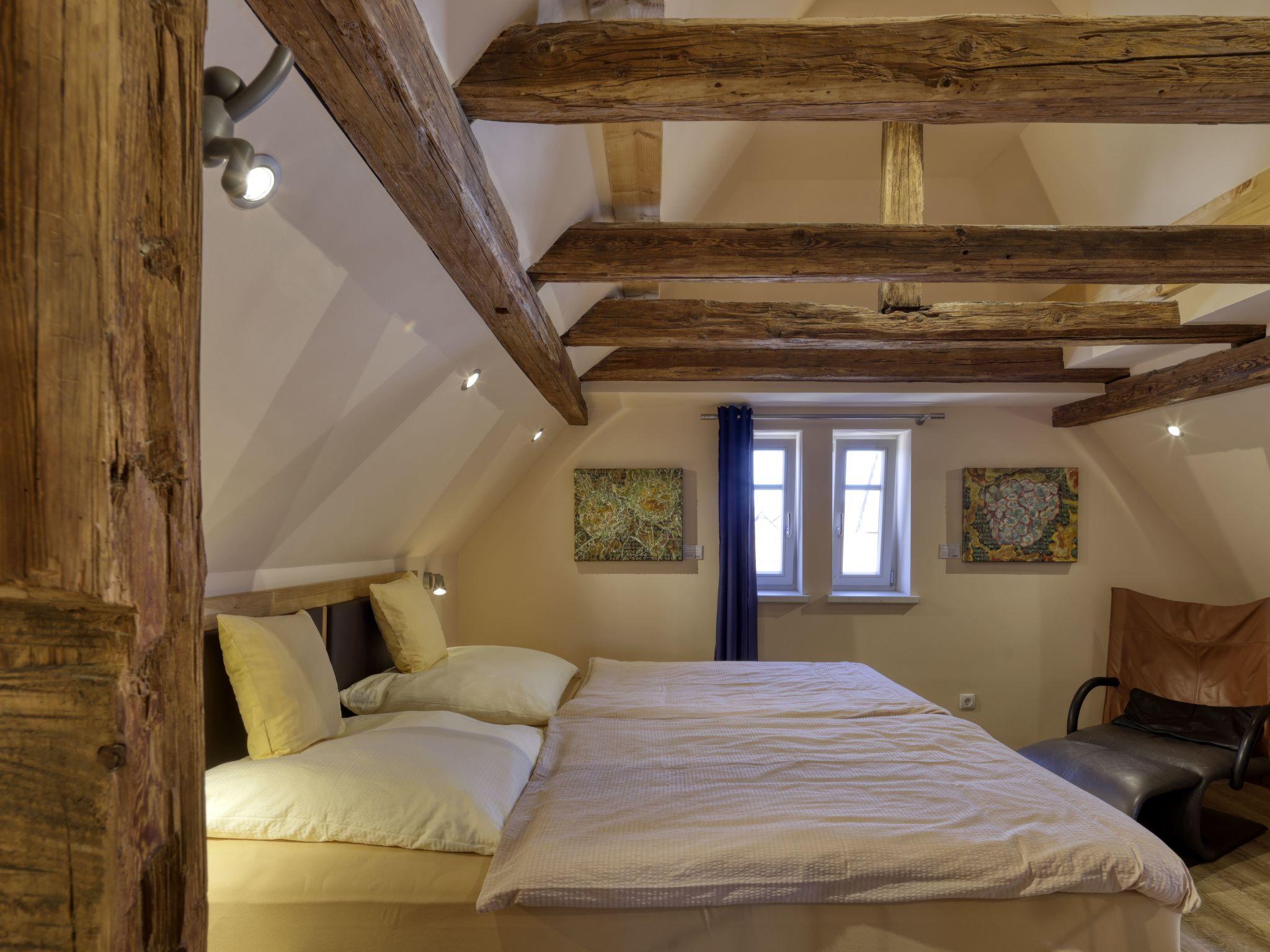 Quiet, cosily furnished deluxe flat over 2 floors on the upper floor of the Hofstallung with a total of 6 flats.in the cosy bedroom, you can lie in the utmost comfort on a solid box-spring double bed under cosy down duvets and let the rising sun wake you up; in the evening, you can enjoy the heavenly tranquillity of the idyllic inner courtyard.as in the entire house, underfloor heating is also installed here, which emits the heat pleasantly evenly. Sun-yellow roller blinds on the windows facing the inner courtyard provide privacy, while the parquet flooring makes the rooms pleasant to walk on and easy to clean, as does the bright and friendly wet area. Right next to the apartment complex you will find the Mainkai promenade for strolling and sunbathing, as well as a well-run international restaurant with sun terraces, lounge and vaulted cellar. Just 80 metres above, on the market square, there are several restaurants ranging from Chinese and Greek to one of the best Franconian brewery pubs, the Bräustüble. You will also find bakers, butchers and all other shops for your daily needs within walking distance around the market square.Brief descriptionOther : Non-smoking houseShort description 1Number of kitchens : 1Bedroom 1Other bedroom furnishings : ZEN-SeSsel and TVSurroundingsLeisure facilities : Car hire, bicycle hireSports facilities in the surrounding area : Fishing, Basketball, Football pitch, Golf course, Hunting, Canoeing, Mountain biking, Cycling, Horse riding, Rowing, Sailing, Sports centre, Tennis, Water skiingGarden and outdoor facilitiesGarden equipment : Garden furniture available, Barbecue, GazeboServicesServices (may apply) chargeable) : Cleaning service during your stay, Maid service