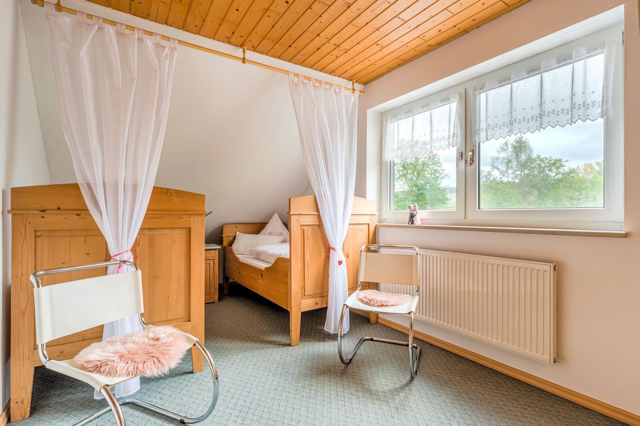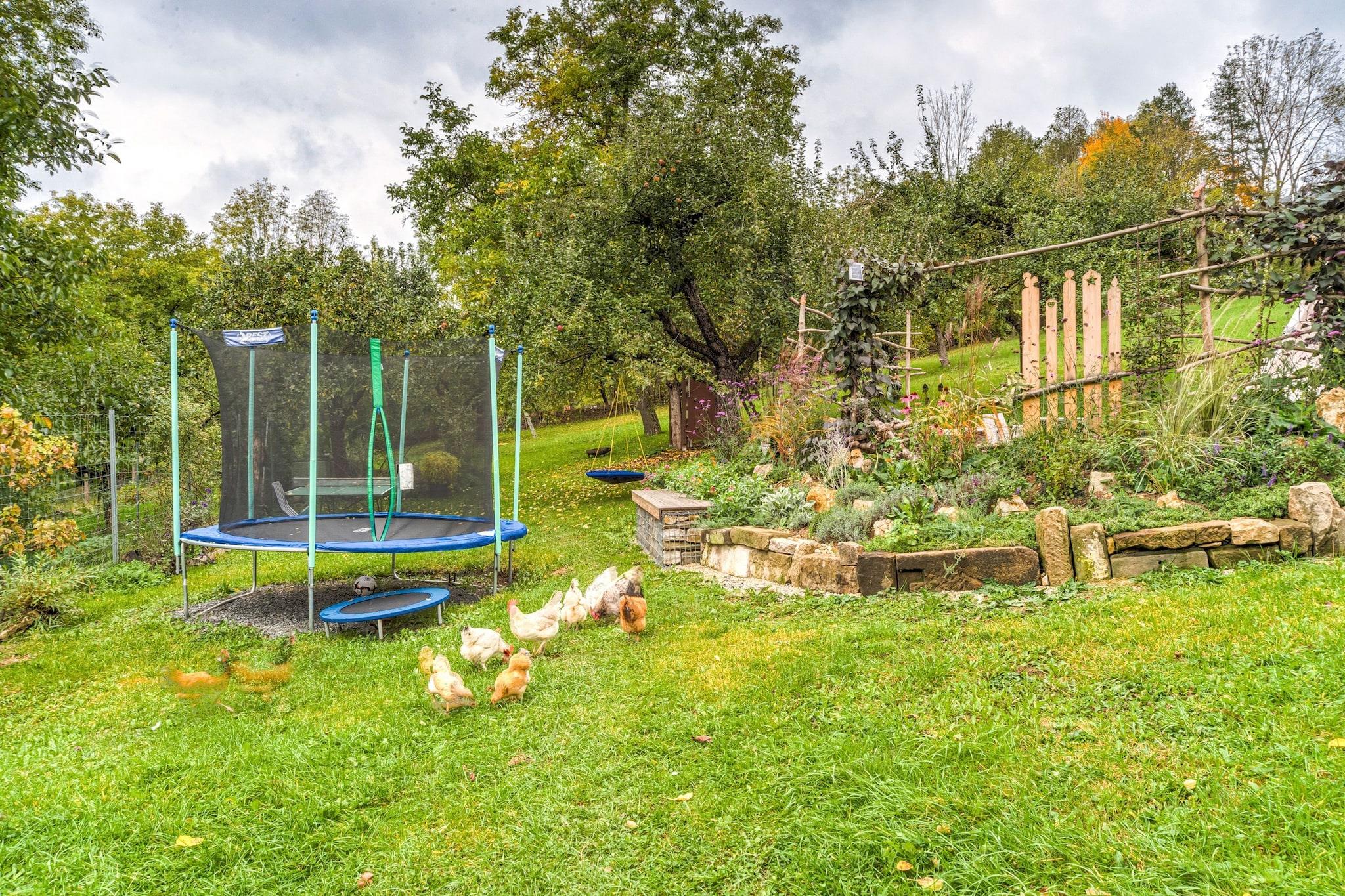 Denne smukke og rummelige 3-værelses lejlighed i Marktrodach tilbyder et afslappende ophold for op til 6 gæster midt i fredfyldte naturlige omgivelser i Bayern. Uanset om du rejser med familie eller venner, er denne lejlighed på anden sal den perfekte base for at udforske eller slappe af. Lejligheden har centralvarme, adgang til fælles have og grill til hyggelige aftener udendørs. Børn vil elske legepladsen med sandkasse, mens indendørs spil som bordfodbold og bordtennis holder alle underholdt. For ekstra afslapning er en betalt sauna tilgængelig. Kun 300 m fra byens centrum og 700 m fra både supermarkeder og en offentlig swimmingpool, er alt hvad du behøver i nærheden. En fredelig skov (200 m) og en naturskøn sø (20 km) byder på ideelle steder til gåture eller picnic. Om vinteren ligger ski- og langrendsmuligheder inden for 25 km. Med privat parkering og en charmerende atmosfære lover dette bayerske tilflugtssted komfort og bekvemmelighed året rundt.