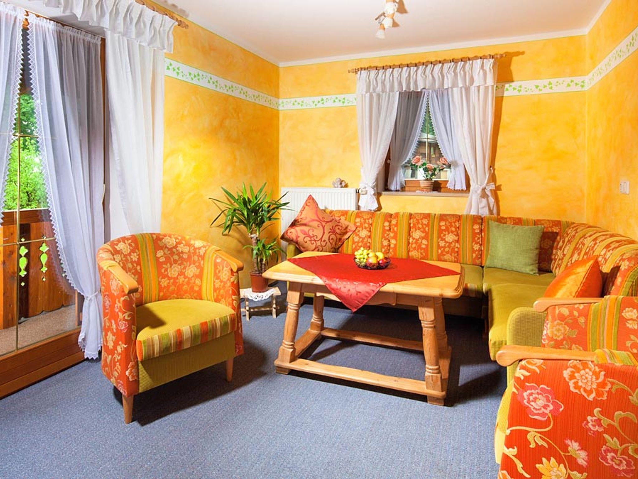 Im Nebengebäude steht Ihnen unsere mit vier Sternen ausgezeichnete Ferienwohnung für 2 Personen zur Verfügung (3 + 4 Person auf Anfrage möglich). Dort finden Sie ein ein Wohnzimmer mit Balkon und TV, ein Schlafzimmer, einen Vorraum mit Küchenzeile und Esstisch und ein Bad mit Dusche. Das Wohnzimmersofa kann problemlos zusätzlich in ein bequemes Doppelbett verwandelt werden. Die Küche ist komplett eingerichtet. Die Wohnung ist auch für Familien mit Kindern sehr gut geeignet. Selbstverständlich gehört die Gartenbenutzung dazu, sowie eine herrliche Aussicht auf unsere Berge.