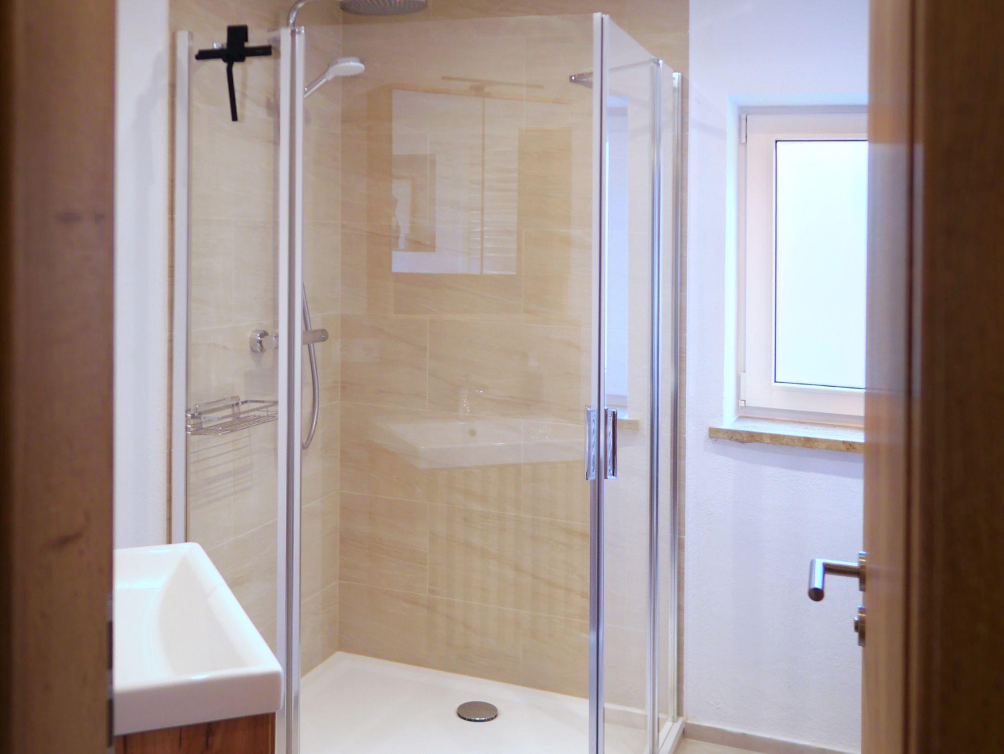 Das Badezimmer bietet jeglichen Komfort wie Tageslicht, Regendusche, Föhn, ausreichend Handtücher, sowie eine Waschmaschine mit integriertem Trockner.