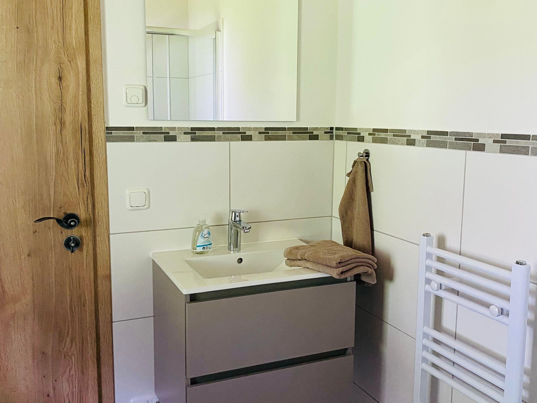 Unsere Ferienwohnung liegt im ersten OG unseres neu errichteten Anbau´s. Sie ist alleinstehend und über einen separaten Treppenaufgang zu erreichen. Zur FeWo gehört eine Terrasse.