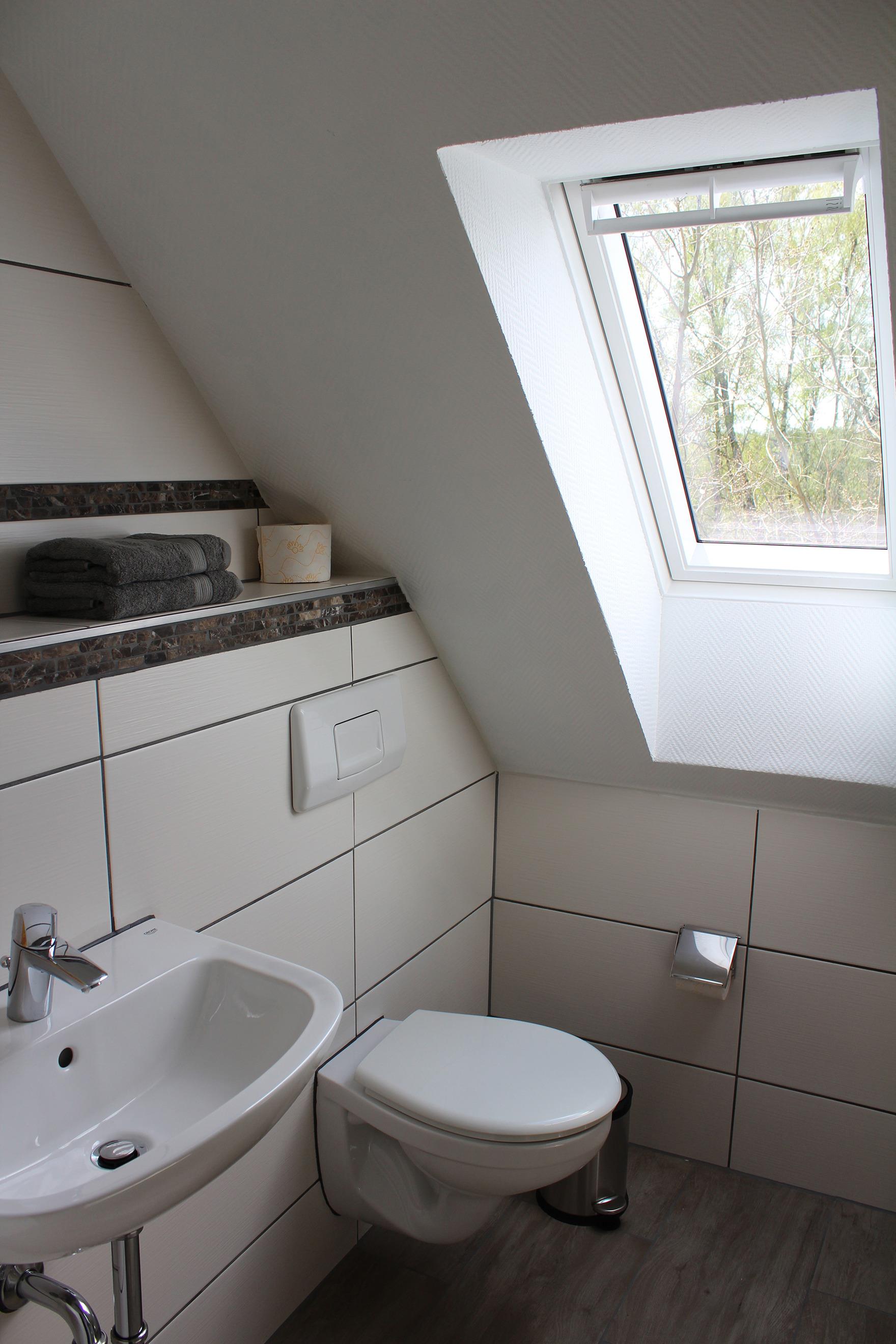 Im Erdgeschoß befindet sich weiterhin ein separates Schlafzimmer mit Doppelbett, eine Dusche mit WC und eine Sauna. Vom Wohn-Essbereich aus erreicht man über eine bequeme Treppe das Obergeschoß. Hier bieten zwei weiter separate Schlafzimmer mit je 2 Doppelbetten Schlafraum für 4 Personen. Im Obergeschoß befinden sich eine Dusche mit WC. Das große Spielzimmer im Obergeschoß hat einen Billardtisch, einen Dartautomaten, dort befindet sich das Schlafsofa, das Platz für bis zu zwei weitere Personen bietet.