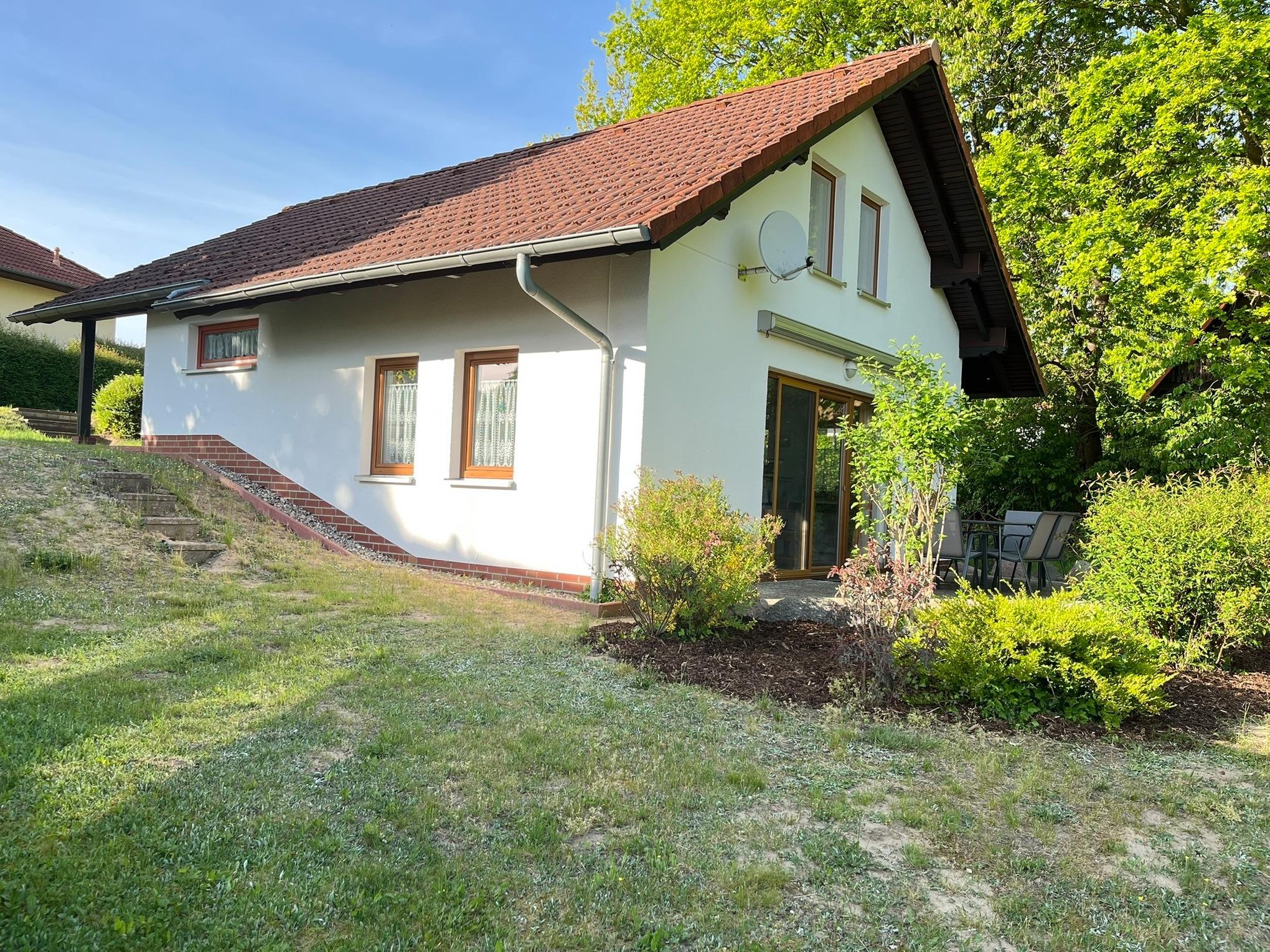 Das Haus verfügt über eine Terrasse, die bei Bedarf mit einer großen Markise überdacht werden kann. Gartenmöbel und Grill vorhanden. 2 PKW-Stellplätze unmittelbar am Haus.