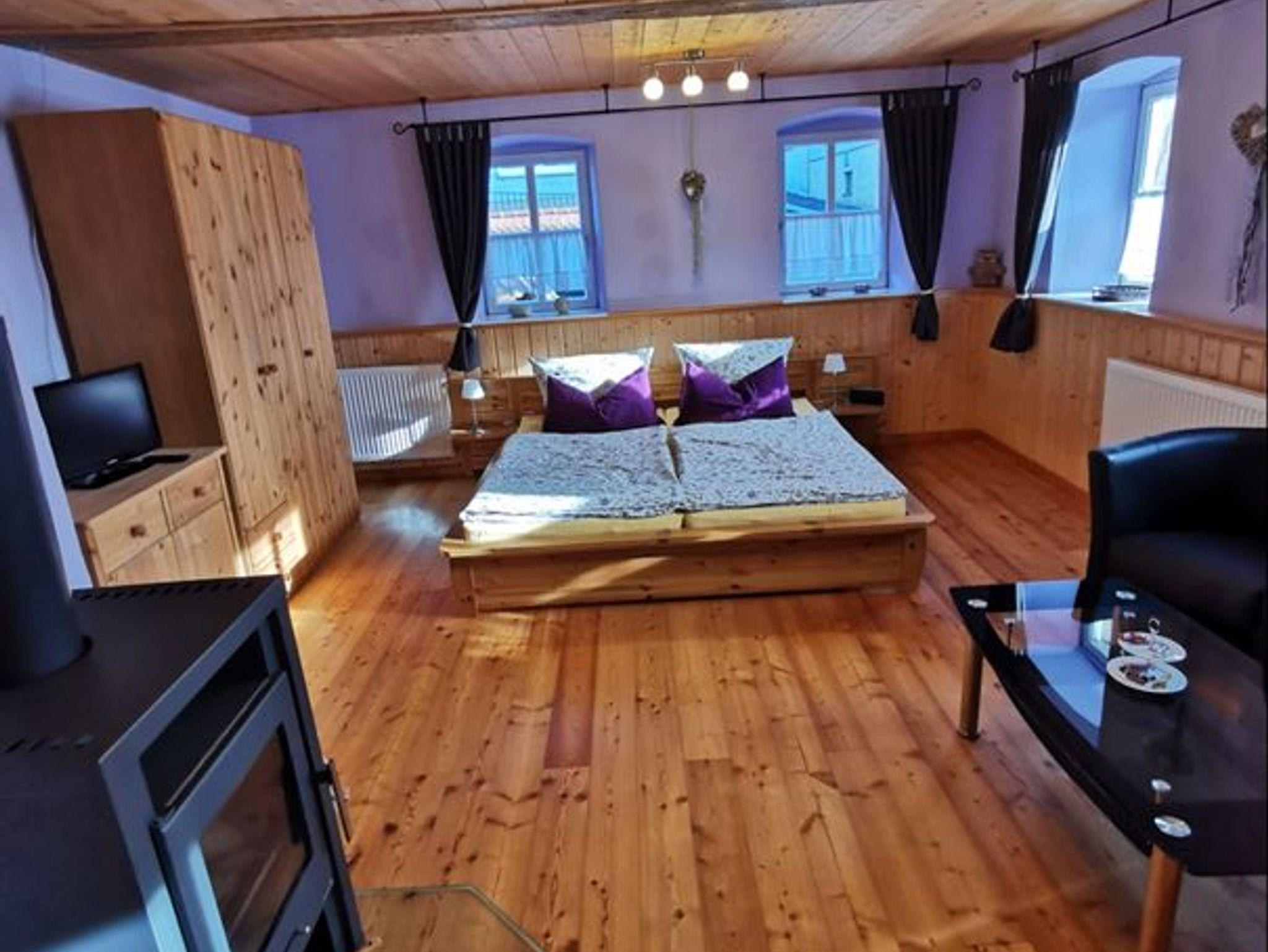 Die liebevoll eingerichtete und gemütliche Ferienwohnung im Landhausstil wird Ihr Domizil sein. Die Echtholzmöbel und das großzügig verarbeitete Holz sorgen für ein angenehmes Wohnklima. Der Schwedenofen sorgt in kalten Zeiten für ein romantisches Ambiente und eine kuschelige Wärme. Der großzügig geschnittene Wohn-Schlafraum lässt keine Wünsche offen. Abgerundet wird das Ganze durch kostenfreies WLAN, ein Festnetztelefon und einen SAT-TV mit integrierten DVD-Player. Die Küche ist voll ausgestattet und besitzt eine Spülmaschine, eine Mikrowelle, eine Kaffeemaschine und eine Senseo-Kaffeemaschine. Auch um Spülmittel, Spüllappen und Geschirrtücher müssen Sie sich nicht sorgen. Das Bad, welches ausschließlich von Ihnen genutzt wird, verfügt über eine Dusche, ein WC und ein Handwaschbecken. Handtücher, Bettwäsche und Fön werden kostenfrei gestellt.