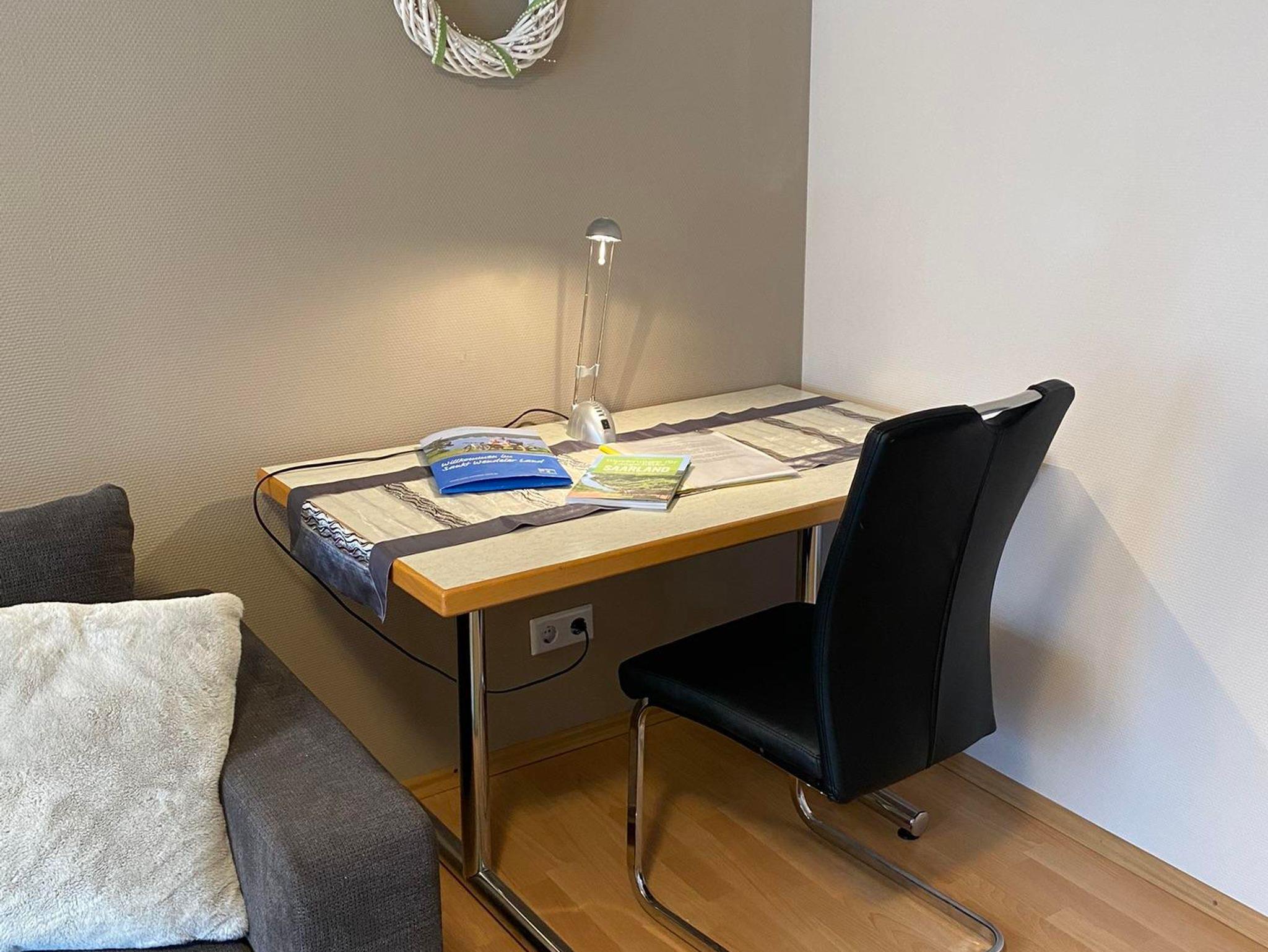 Die moderne Ferienwohnung im Erdgeschoss bietet Ihnen auf 57 Quadratmetern mit offenem Küchen-, Ess- und Wohnbereich ein gemütliches Zuhause auf Zeit. Im Schlafzimmer ist das Doppelbett frisch bezogen, bei längerem Aufenthalt ist Bettwäsche zum Wechseln vorhanden. Im Wohnzimmer kann die gemütliche Couch mit wenigen Handgriffen zu einer weiteren Schlafmöglichkeit für bis zu 2 Personen umgebaut werden. Bei einer Liegefläche von 1,40 m Breite können hier sogar zwei Personen kuscheln. Bettwäsche, Kissen und Decken sind vorhanden. Die komplett eingerichtete Küche lädt zum selber kochen oder backen ein und ist ausgestattet mit allem, was man für bis zu 4 Personen so braucht. Im neuen Bad verwöhnt Sie neben Waschbecken, Urinal und WC eine geräumige, ebenerdig begehbare Regendusche. Ausreichend Hand- und Duschtücher so wie ein Fön sind vorhanden. Ein kleiner Abstellraum hält eine Waschmaschine sowie diverse Geräte vom Bügelbrett bis zum Staubsauger bereit. Kostenfrei sind Internetzugang, jegliche Wäsche, PKW-Parkplatz, Unterstellmöglichkeiten für Fahr- oder Motorräder in abgeschlossener Garage, Mitbenutzung von elektr. Abluft-Wäschetrockner und Gefriermöglichkeit im nur wenige Schritte entfernten Gartenhaus, einem Holzkohlengrilll und dem original saarländischen Schwenker (Feuerholz vorhanden).