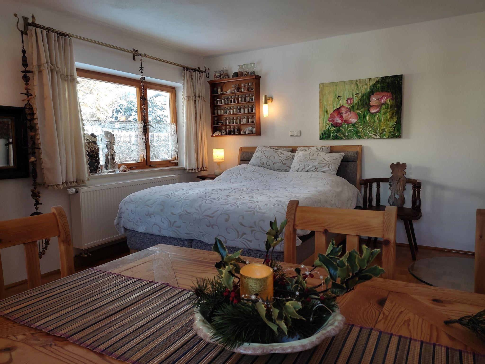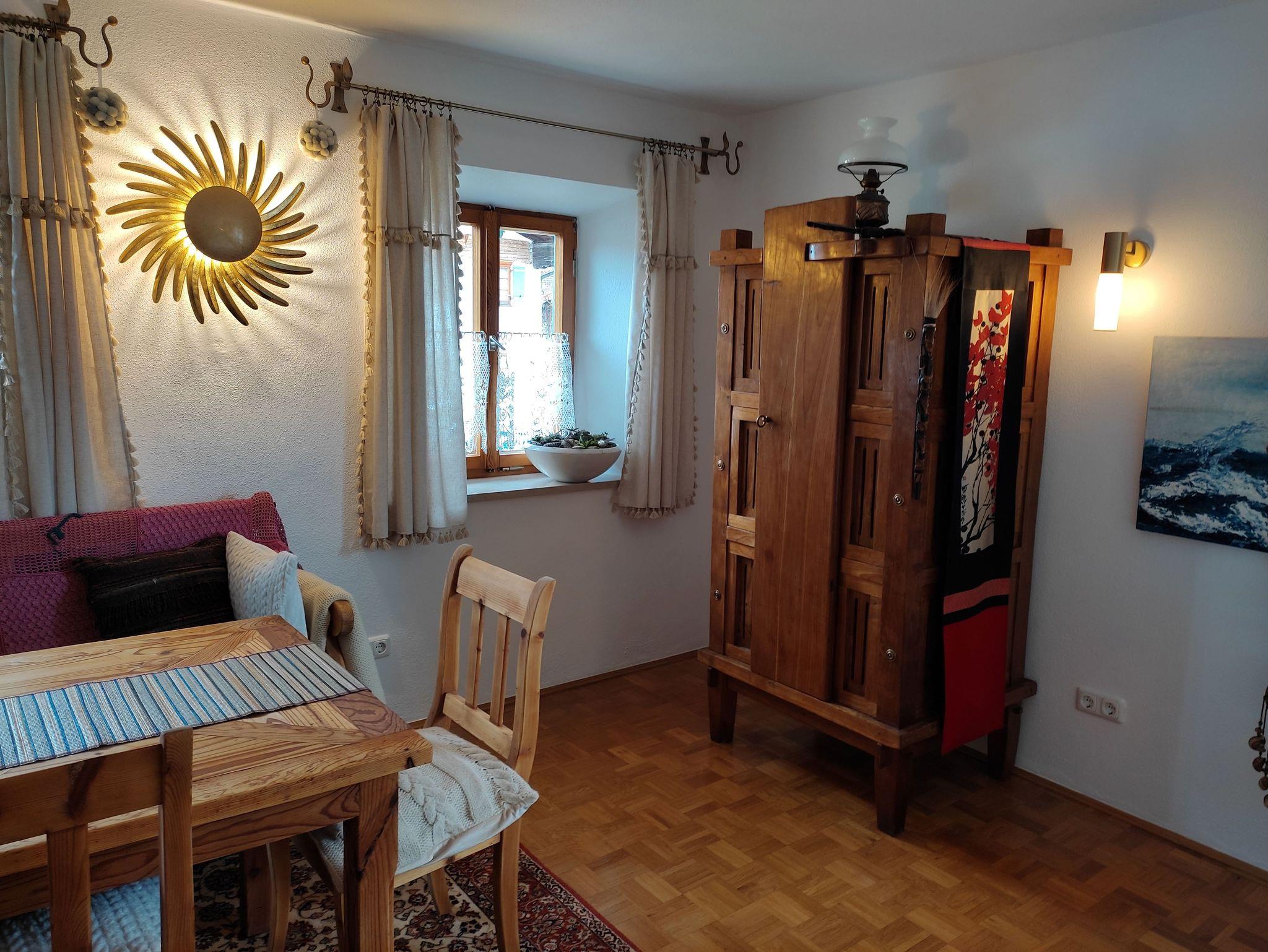 Können Sie sich vorstellen, wie frühere Generationen gelebt haben? Möchten Sie dies mal in Ihrem Urlaub ausprobieren? Das Haus ist von anno 1583 und erinnert Sie vielleicht an die alten Geschichten Ihrer Urgroßeltern. Vieles hier erinnert daran, wie es früher einmal war, eingebettet in modernem Komfort, also ein richtiges Erlebniswohnen. Und das alles künstlerisch geschmackvoll und liebevoll arrangiert. Dazu der fantastische Bergblick vom Fenster aus zur Burg Marquartstein, vom Predigtstein zum Hochlerch, dem Vorberg des Hochgern, sowie das erhabene Felspanorama der Luchsfellwand. Auch schaut man direkt in den großzügigen Garten auf die wunderschöne Richard-Strauss-Villa.