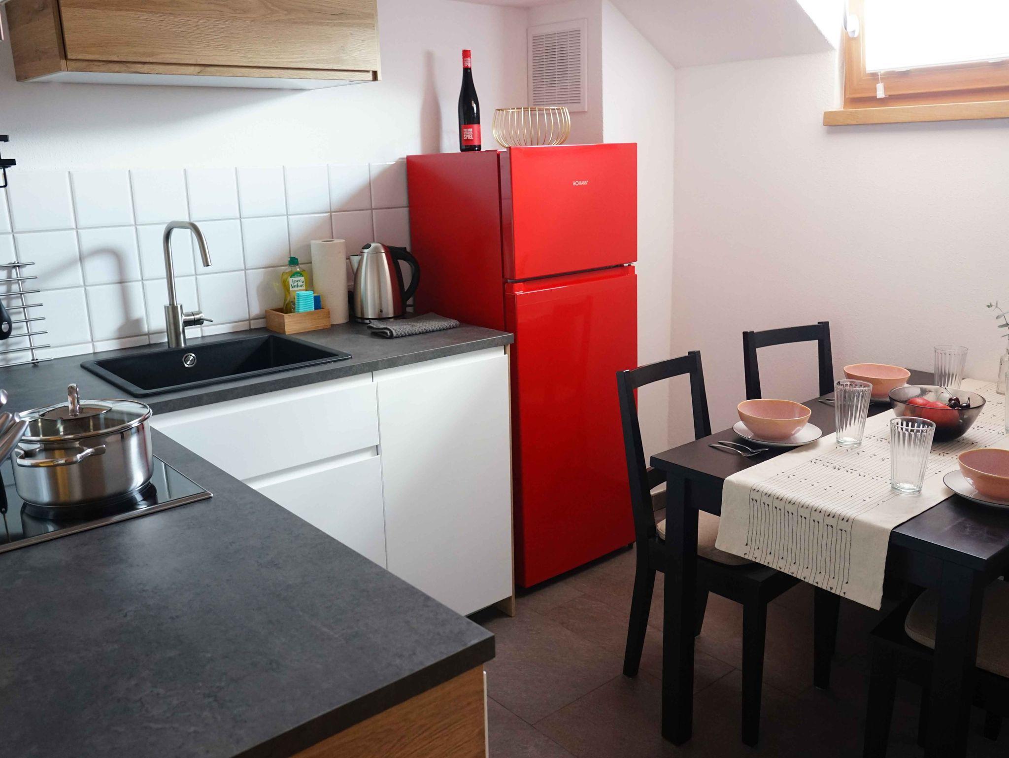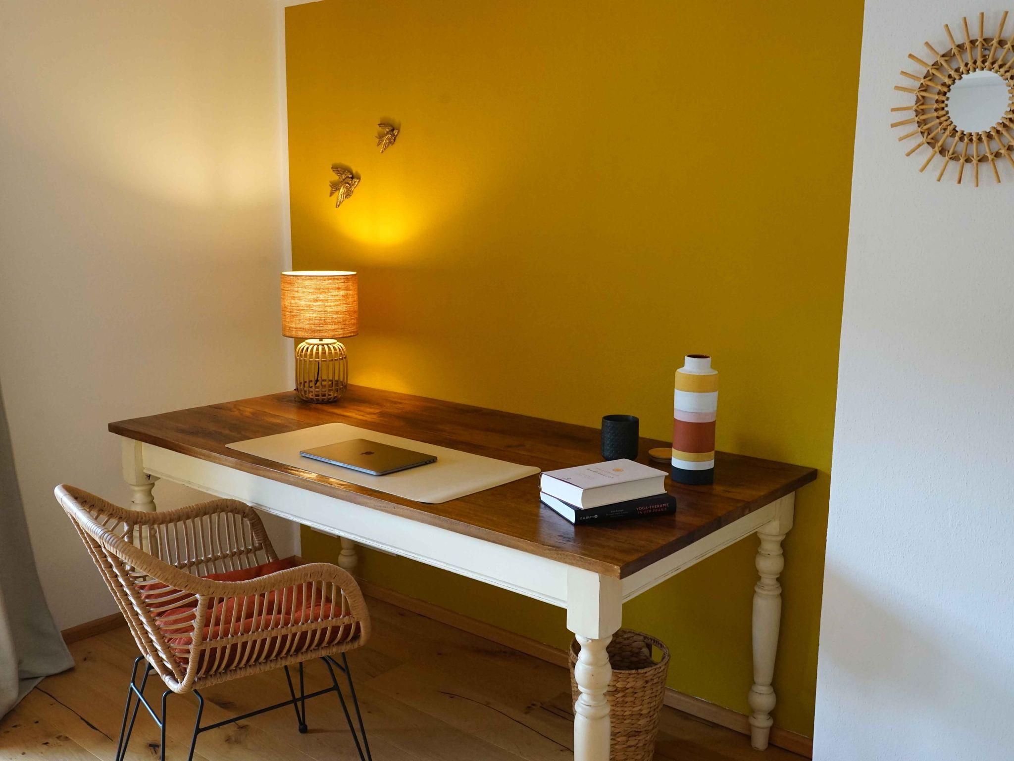 Die Ferienwohnung Sun II im eleven Marquartstein ist eine moderne 60qm große Dachgeschoss-Wohnung mit inspirierendem Ambiente: Sie verfügt über ein Schlafzimmer mit Doppelbett, eine separate voll ausgestattete Küche mit Essplatz, ein Wohnzimmer oder zweites Schlafzimmer (Queensize-Bett) mit großzügigem Arbeitsplatz inkl. Bergblick-Balkon und ein kleines Bad mit großem elektrisch steuerbaren Dachfenster und Badewanne. Die Zimmer sind mit hochwertigem Parkett und Fliesen sowie Fußbodenheizung ausgestattet. Yogamatten, Bio-Kaffee und Tee sowie eine kleine Auswahl an Gewürzen, Essig und Öl stehen bereit. Alle Zimmer haben Fenster bzw. Balkon. WLAN; Netflix und Parkplatz im Hof sind kostenlos. Direkt im Hof befindet sich (gegen Aufpreis) eine Lademöglichkeit für Elektrofahrzeuge. Gäste haben außerdem die Möglichkeit, Angebote wie Yoga, Ayurveda-Workshops und Coaching (Life & Business) zu ihrem Aufenthalt dazuzubuchen. Achtung: Treppenaufgang ist etwas steiler und die Deckenhöhe im Bad durch Dachschräge relativ niedrig!
