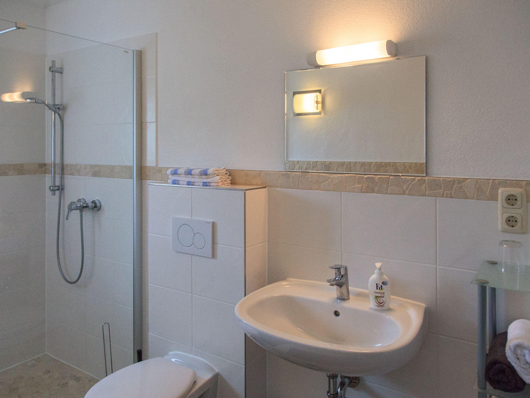 Ferienwohnung für 2 Personen, separater Eingang, Wohn- und Schlafraum mit Essbereich, Küche extra, Dusche mit WC, eigene Terrasse Nord- und Südseite, SAT-TV und WLAN, Bettwäsche und Handtücher inklusiv.