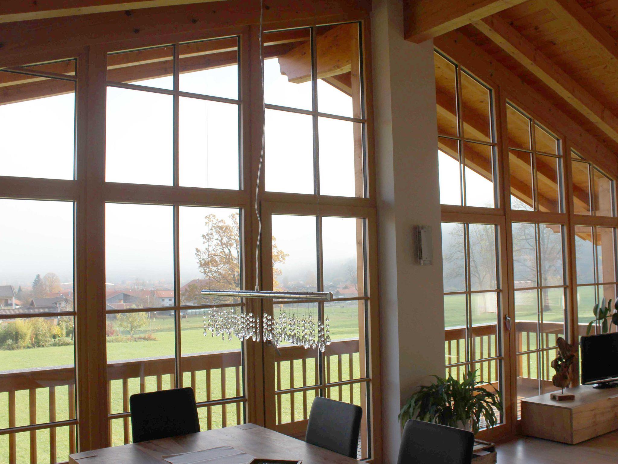 Ruhige gemütliche Neubauwohnung im ersten Stock mit Sichtdachstuhl. Wohn-Küche mit großem Panoramafenster und freiem Bergblick. Balkon mit Gartenmöbeln und herrlicher Aussicht auf die idyllische Bergwelt.