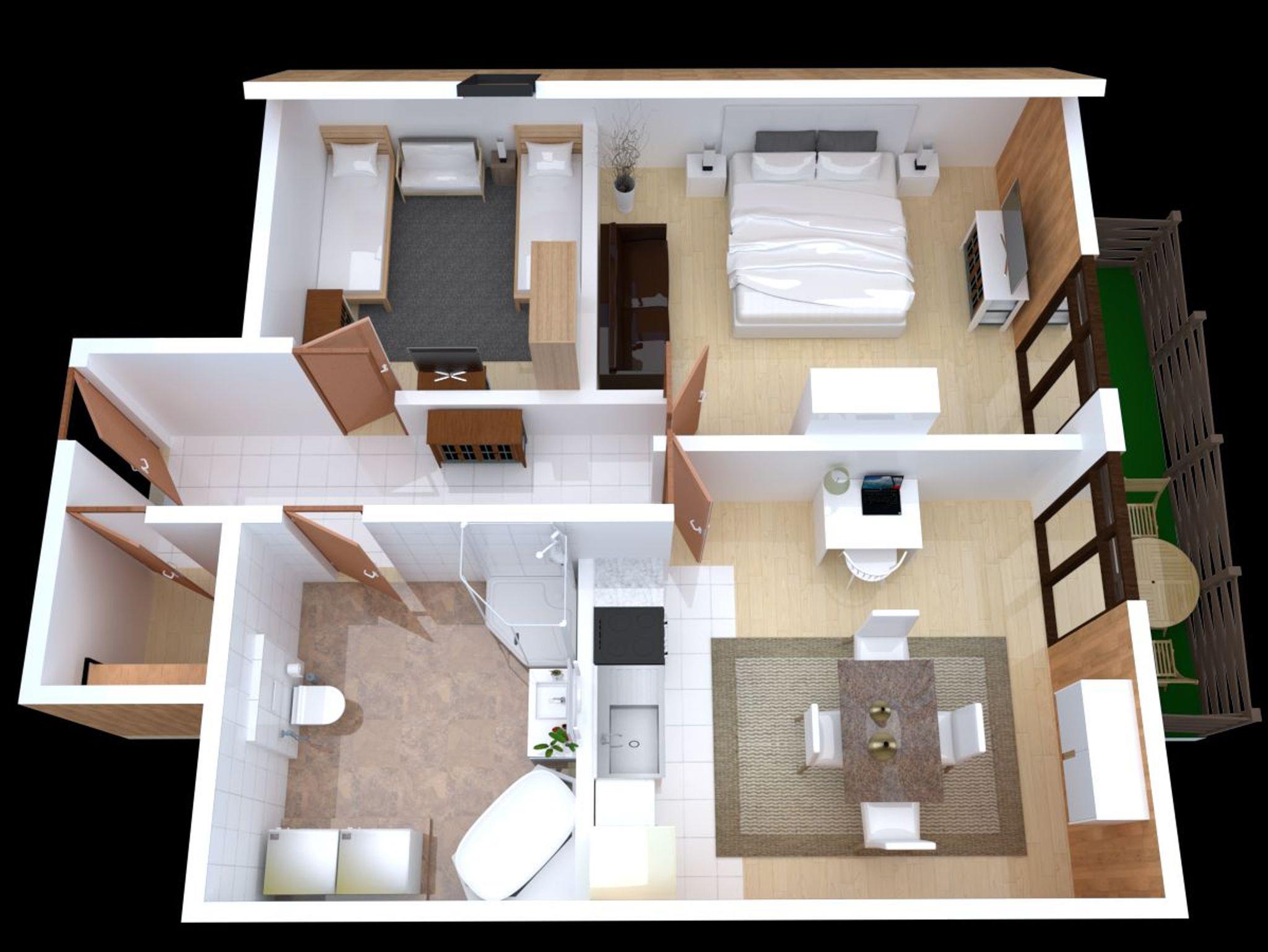 Ferienwohnung für max. 4 Personen; Große Wohnküche mit Backofen, 4-Platten-Herd, Geschirrspüler, Gefrierkombination, Mikrowelle etc.; Überdachter Balkon, 2 separate Schlafzimmer (1 x Doppelbett und 1 x je 2 Einzelbetten) mit TV (inkl. Amazon Fire Stick); Großes Bad mit Badewanne, Dusche, WC, Fußbodenheizung, Haarföhn, Waschmaschine und Trockner; kostenloses Wlan; Playstation mit Spielen; Vollausstattung inkl. Bettwäsche, Handtücher, Küchenausstattung, Kaffeemaschine, Gewürze und vieles mehr.