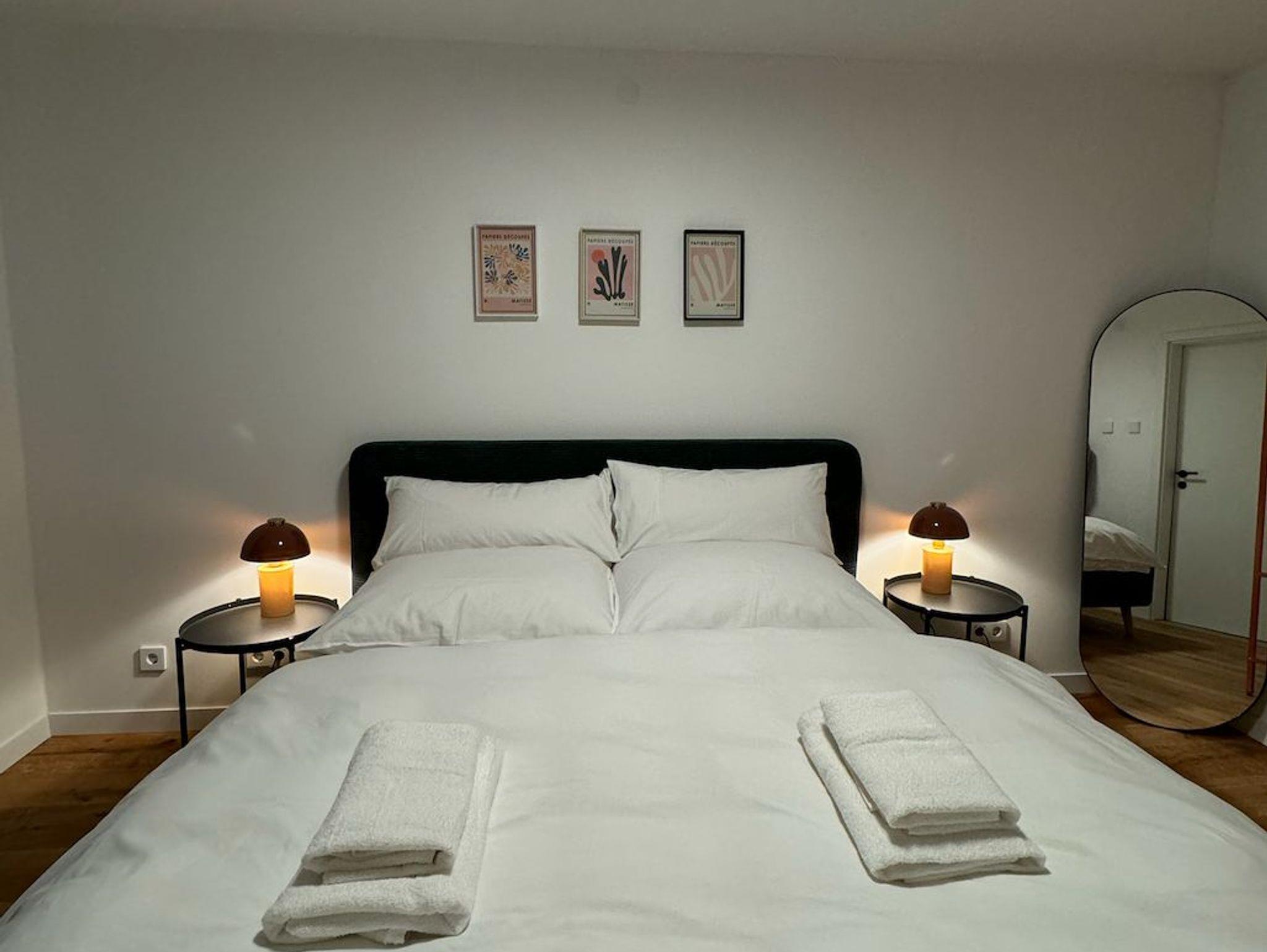 Schlafzimmer: Jedes Schlafzimmer ist mit einem Schrank ausgestattet, damit Sie sich wie zu Hause fühlen und ausreichend Stauraum haben.