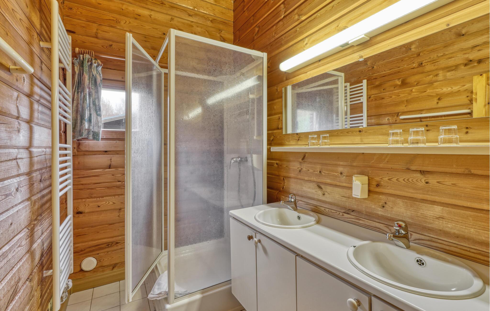 Glæd jer til jeres afslappende familieferie i dette rustikke og varme feriehus. Boligen er indrettet med praktiske træmøbler og byder på alt hvad I behøver til en ubekymret ferie. Huset er veludstyret og emmer af en hjemlig atmosfære, der lægger op til at spille spil og se film i stuen og til at lave mad sammen i det åbne køkken. Den store, delvist overdækkede terrasse er også et dejligt sted at nyde jeres måltider eller slappe af i solen.
