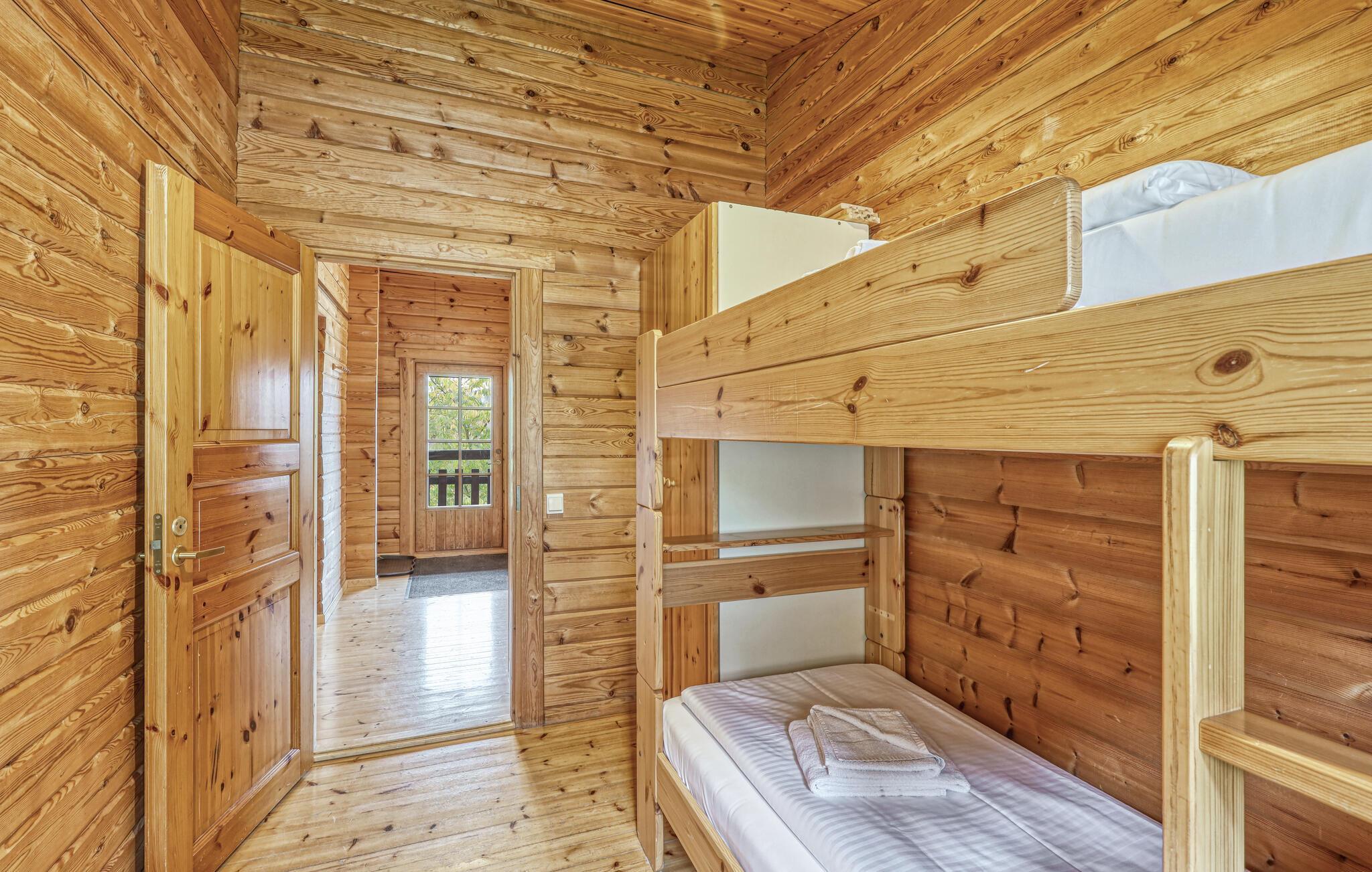 Glæd jer til jeres afslappende familieferie i dette rustikke og varme feriehus. Boligen er indrettet med praktiske træmøbler og tilbyder jer alt, hvad I har brug for til en ubekymret ferie. Huset er veludstyret og udstråler en hjemlig atmosfære, der indbyder til at spille spil og se film i stuen og lave mad sammen i det åbne køkken. Den store, delvist overdækkede terrasse er også et dejligt sted at nyde jeres måltider eller slappe af i solen.