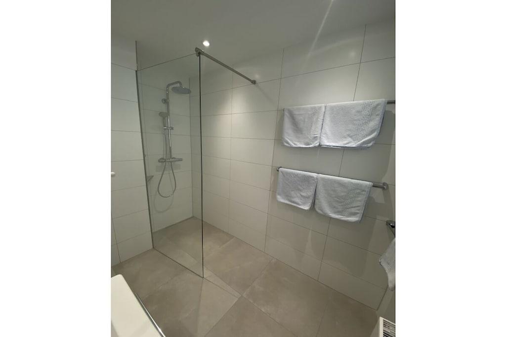 På 1. etage: (Stue(, , , , Fjernsyn, radio, stereoanlæg, havemøbler, solstole, baldakin)) Køkken(, , kogeplade, elkedel, brødrister, kaffemaskine, mikrobølgeovn, opvaskemaskine , køleskab, fryser, vaskemaskine), soveværelse(, , dobbeltseng), soveværelse(, , dobbeltseng), badeværelse(, , bruser, håndvask, føntørrer), guest toilet(, toilet, håndvask), Internetadgang, Internetadgang, balkon(havemøbler, solstole, baldakin),