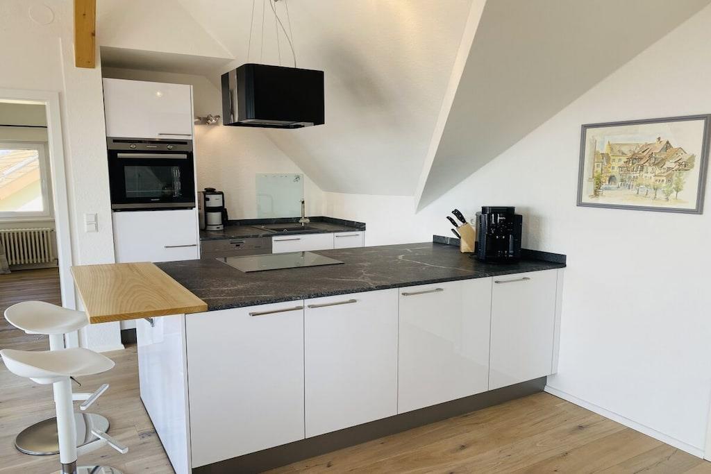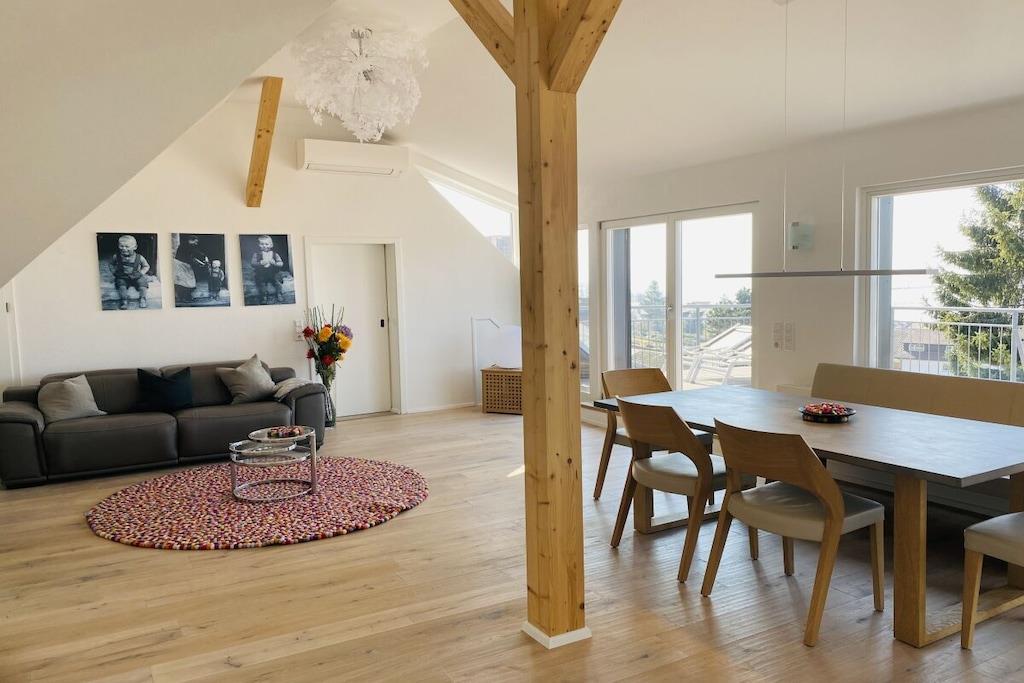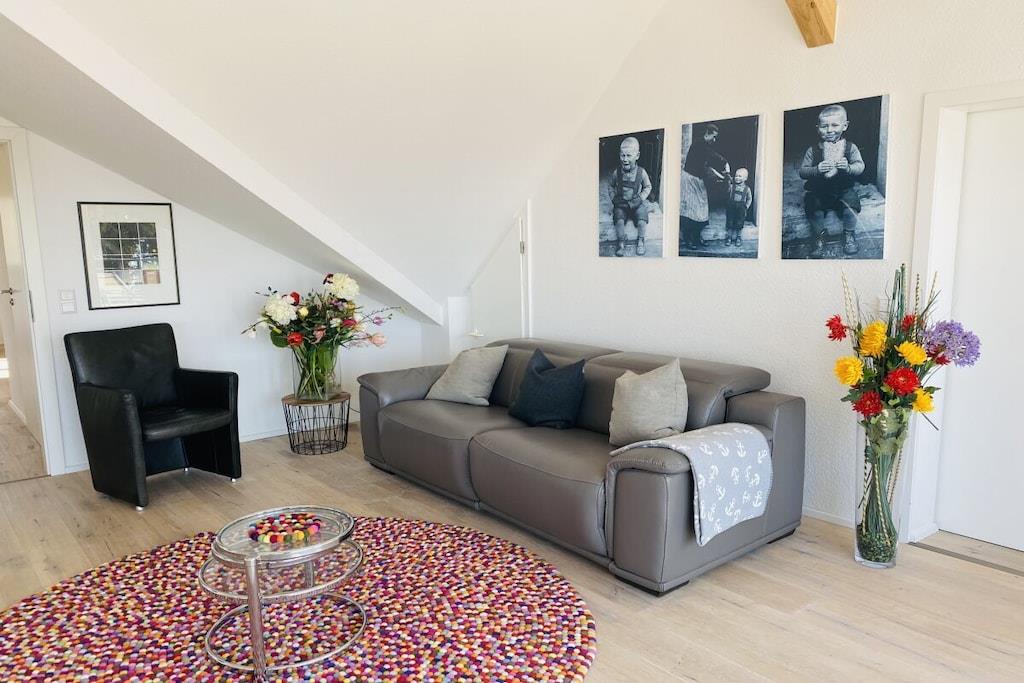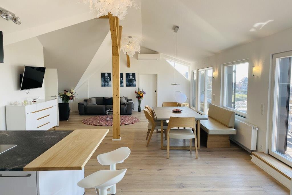 Unser Appartement Seeblick ist 126qm groß, großzügig und hell. Es hat 2 separate Schlafzimmer, ein großes Wohnzimmer, einen gemütlichen Essplatz, eine Sofaecke, ein Leseecke, eine komplette, offene, moderne Küche, ein großes Badezimmer mit begehbarer Dusche, Waschmaschine, WC, Sauna und ein separates WC Wir freuen uns auf Sie.