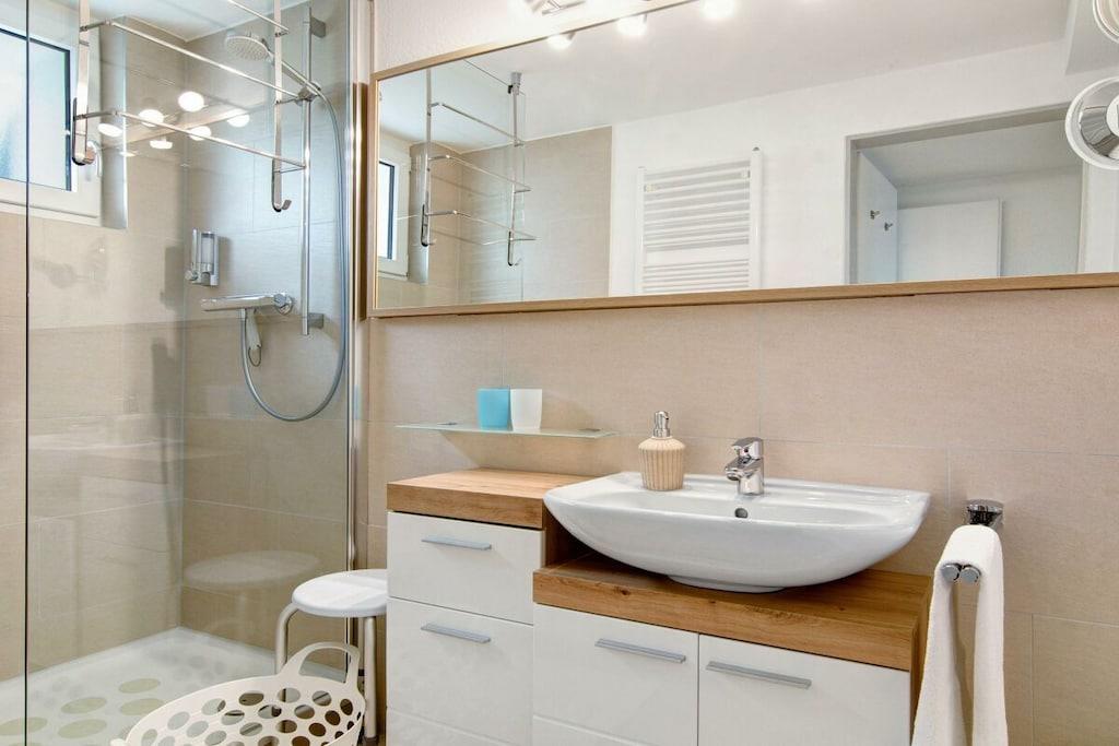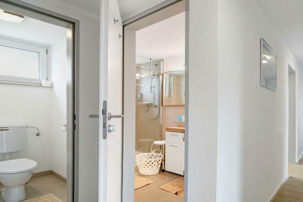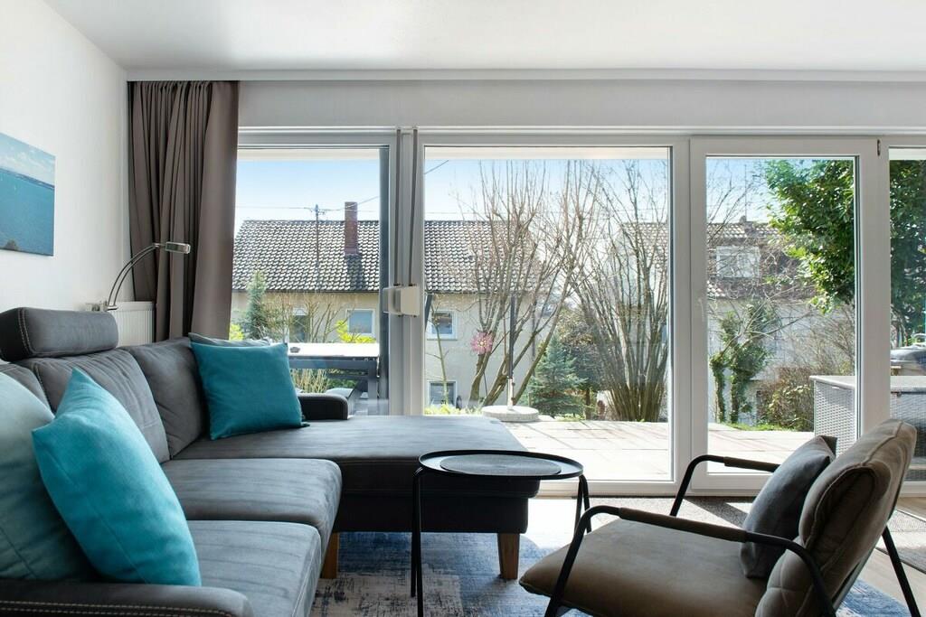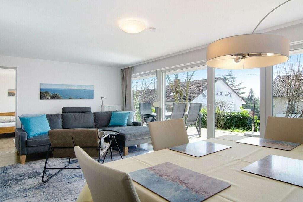 Lys og luksuriøs ferielejlighed i stueetagen med haveterrasse, stor solrig terrasse og to separate soveværelser. Nyd den rummelige have til eget brug. Liggestole og grill er til rådighed. Alt er her – medbring blot dine personlige ejendele, og nyd din ferie. Ca. 80 m², 2 separate soveværelser med dobbeltsenge (180x200 cm), stor stue og spisestue, fuldt udstyret separat køkken, badeværelse med bruser, separat toilet, sydvendt terrasse, stor have, søudsigt, liggestole, grillfaciliteter, separat indgang.