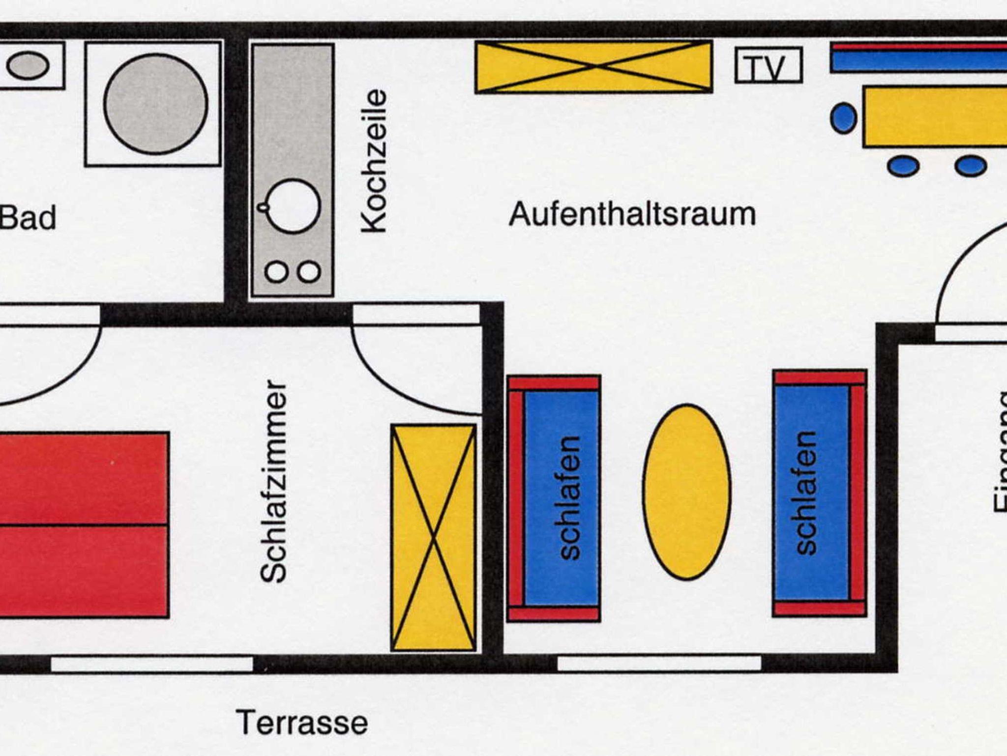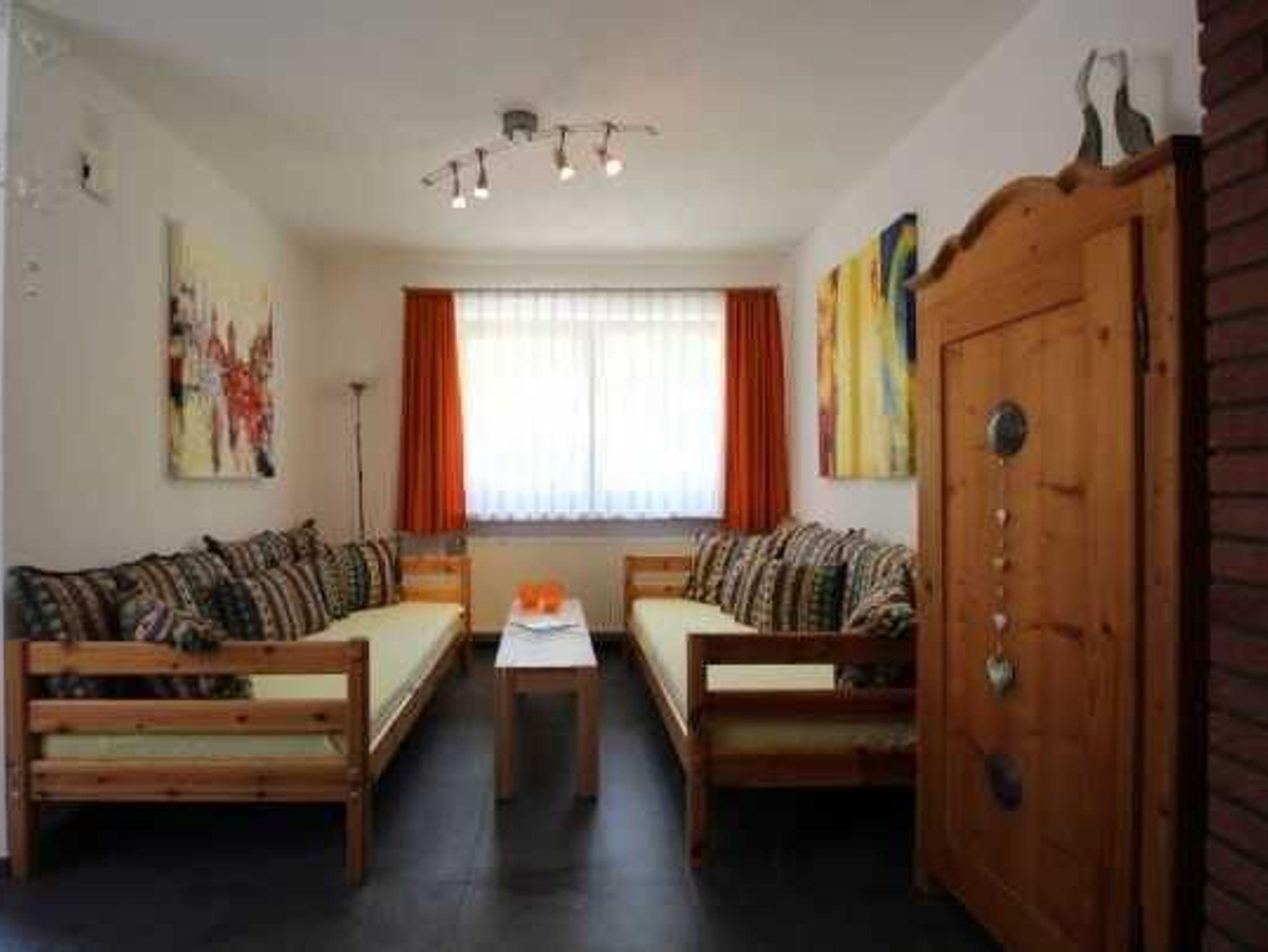 Freundliche und liebevoll eingerichtete, ebenerdige Zwei-Zimmer Wohnung mit eigener Terrasse (Ausrichtung nach Süden). Großzügiger Wohn- und Essraum mit zwei Schlafsofas und einer Eckbank. Das Schafzimmer ist mit einem Kleiderschrank und einem Doppelbett ausgestattet. Die Küche ist komplett eingerichtet mit Kühlschrank, Cerankochfeld, Backofen, Spülmaschine, Kaffeemaschine u.v.m.
