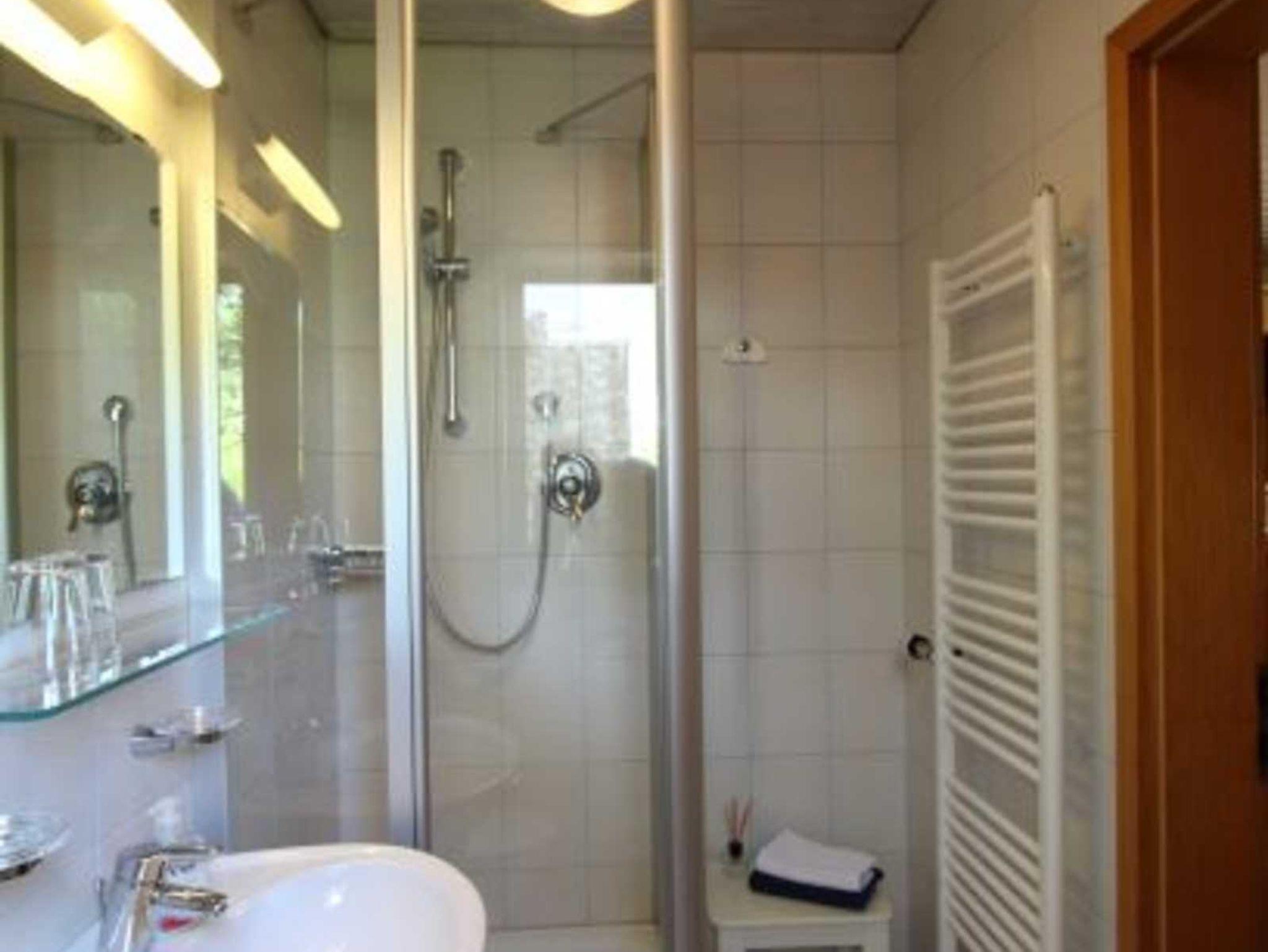 Bad mit Dusche, Waschbecken und Fön. Die gesamte Ferienwohnung ist eine Nichtraucher Wohnung.
