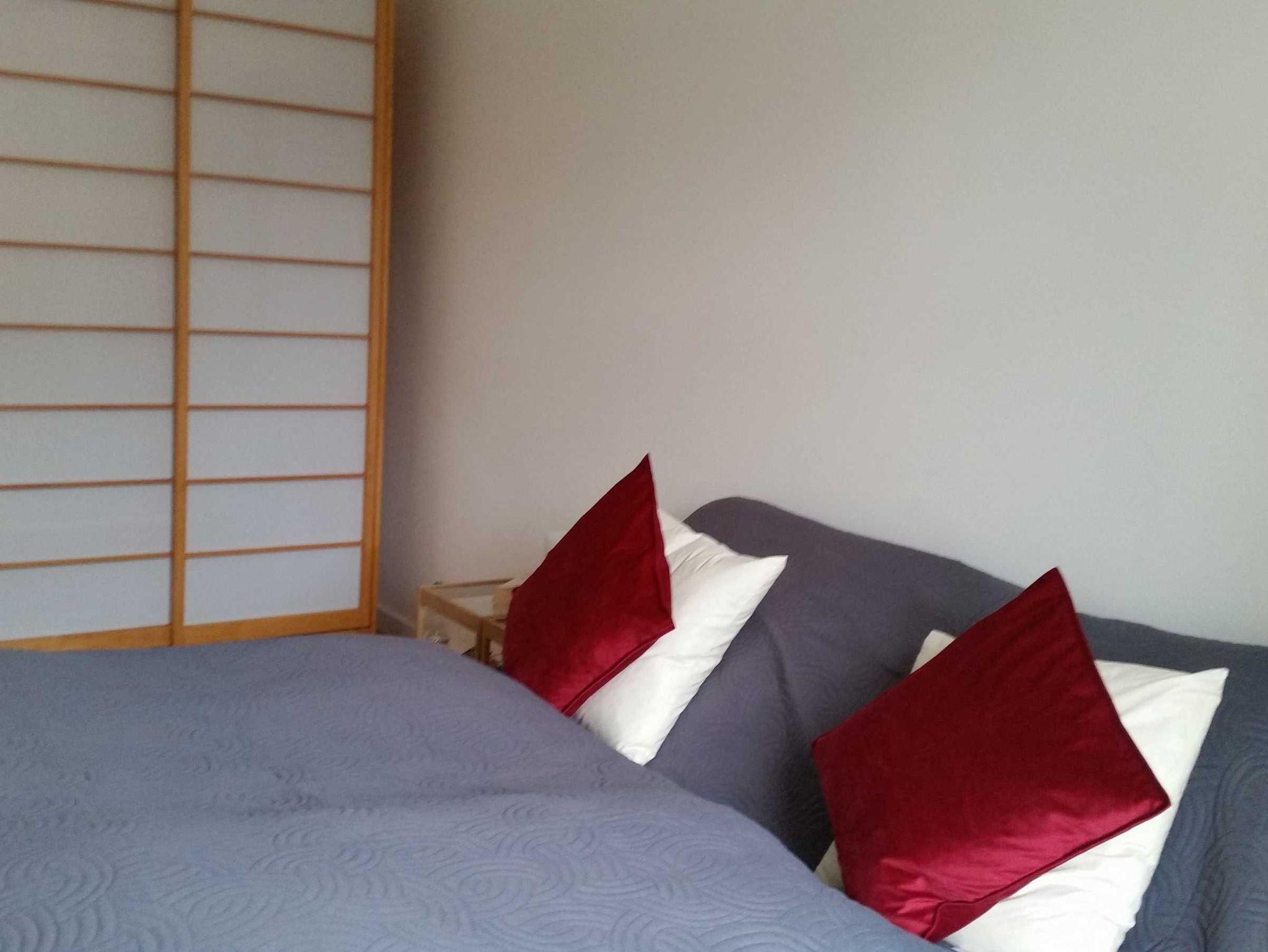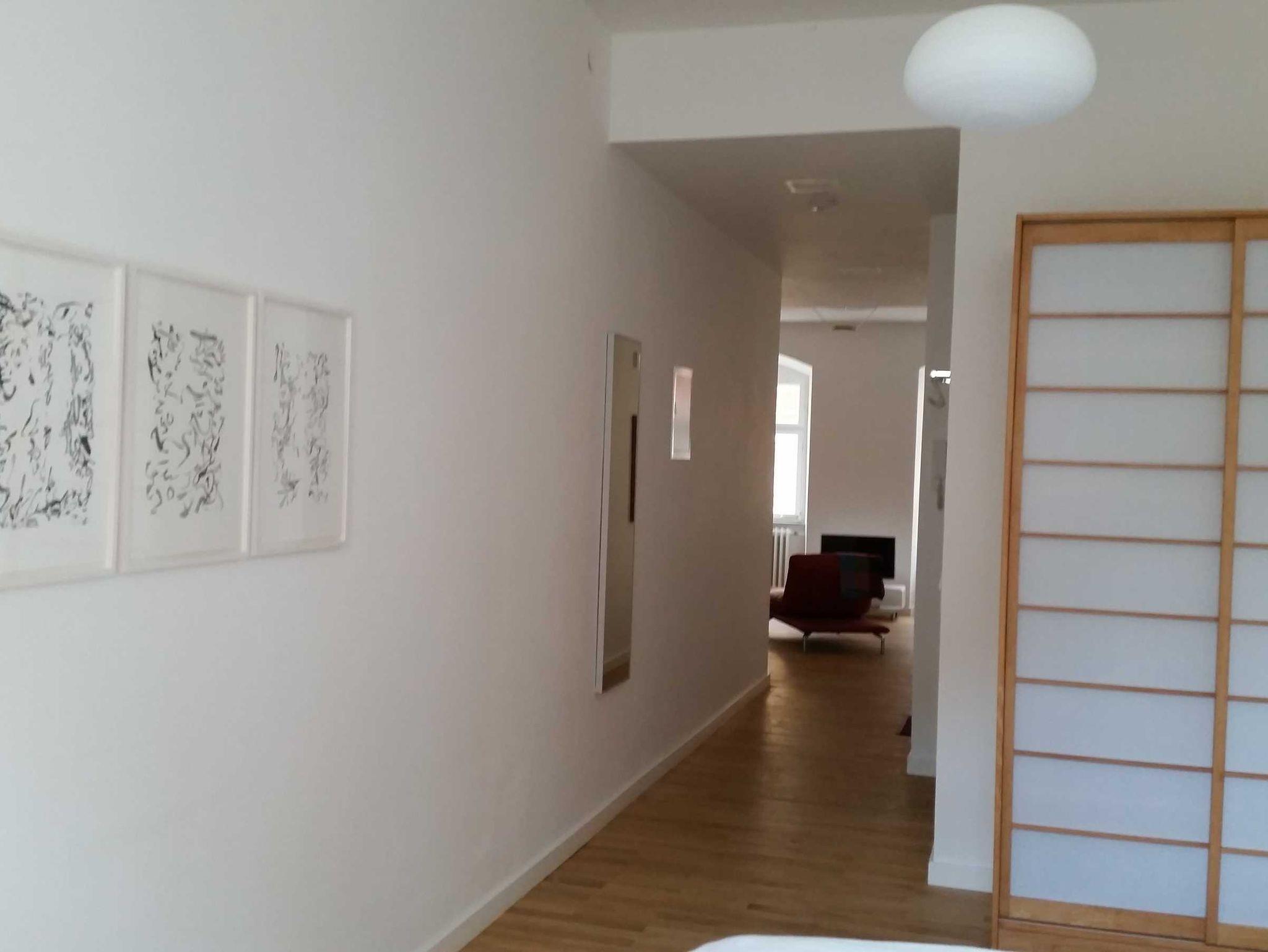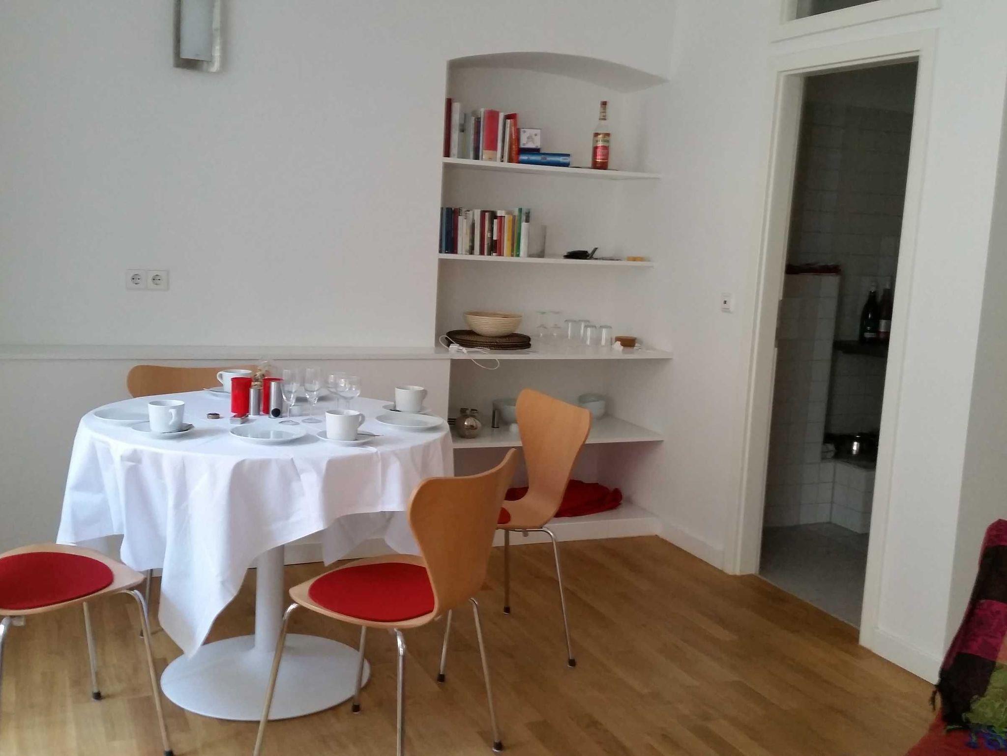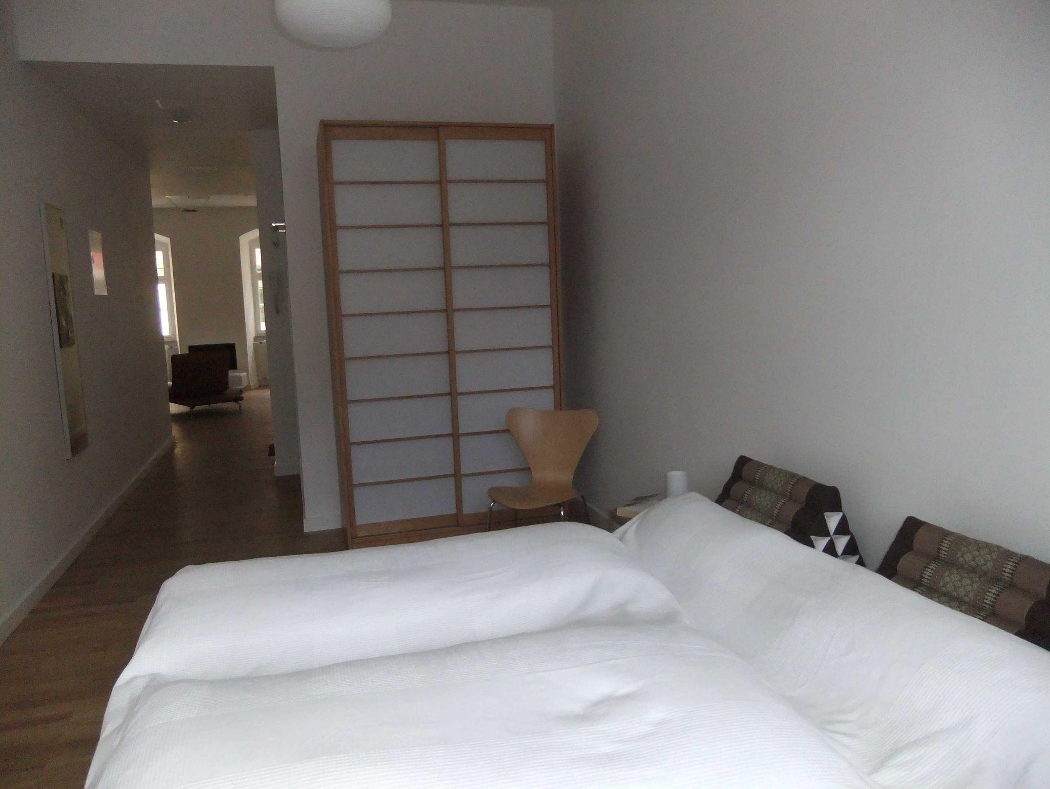 Die Wohnung ist modern und sehr geschmackvoll ausgestattet. Essecke mit Platz für vier. Sitzgarnitur aus Leder, kleine separate Küche, WC/Dusche und geräumiges Schlafzimmer mit 1,60 m breitem Bett. Kostenloses W-Lan, Kabel-TV, Blick auf Schloss und Schlossplatz sowie auf die historische Fachwerkhäuser. Sehr hohe Decken, hochwertiger Eichenholzparkettboden in Wohn- und Schlafraum sowie im Flur.