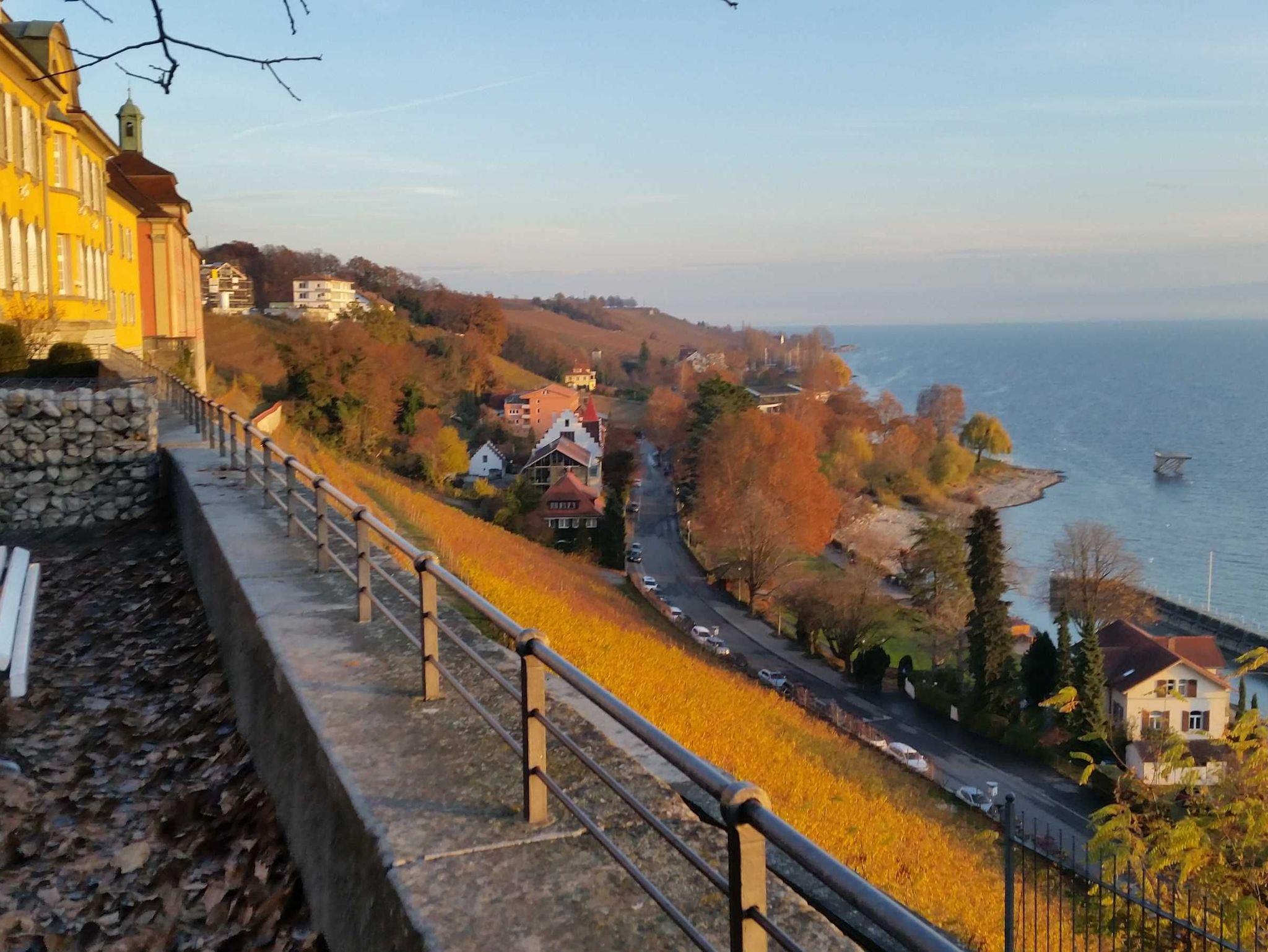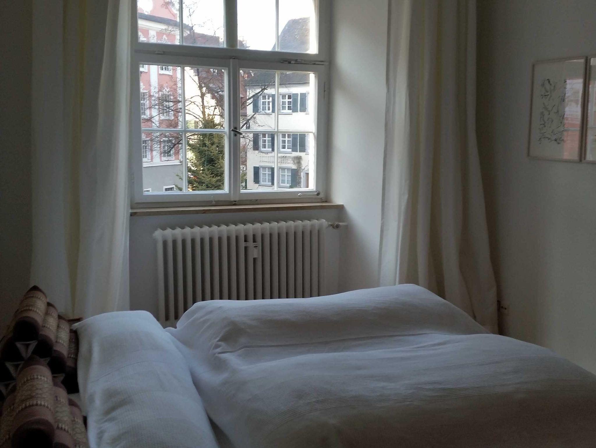 Schöne, gepflegte Wohnung für Kulturliebhaber am Schlossplatz Ob ein Konzertabend im Neuen Schloss, Weinprobe im Staatsweingut oder fangfrischer Fisch in einem der guten Restaurants: Vieles, was Meersburg zu bieten hat, liegt direkt vor Ihrer Tür. Am See sind Sie zu Fuß in wenigen Minuten. Sie wohnen vis à vis vom Neuen Schloss in einem der geschichtsträchtigsten Gebäude der Stadt: der einstigen Residenz der Konstanzer Bischöfe. Erbaut wurde das denkmalgeschützte Barockhaus 1700 von Bischof Marquard Rudolf von Rodt, daher der Name: Rodt’sches Palais. Die offen gestaltete 54qm-Wohnung zwischen historischen Fachwerkhäusern im Herzen der Altstadt wurde komplett renoviert und neu eingerichtet: Die beiden hohen, lichtdurchfluteten Räume, massives Eichenholzparkett und die hochwertige Einrichtung bieten ein komfortables Wohnen in historischem Ambiente. Die Küche ist neu: Mikrowelle, großer Kühlschrank, Cerankochfeld mir 2 Platten und viel Platz auf wenig Raum. Per Fahrstuhl und Schlüssel gelangen Sie direkt in Ihre Wohnung. In wenigen Schritten sind Sie an einer wunderbaren Aussichtsterrasse mit einzigartigem Blick über den Bodensee und auf die Schweizer Alpen.