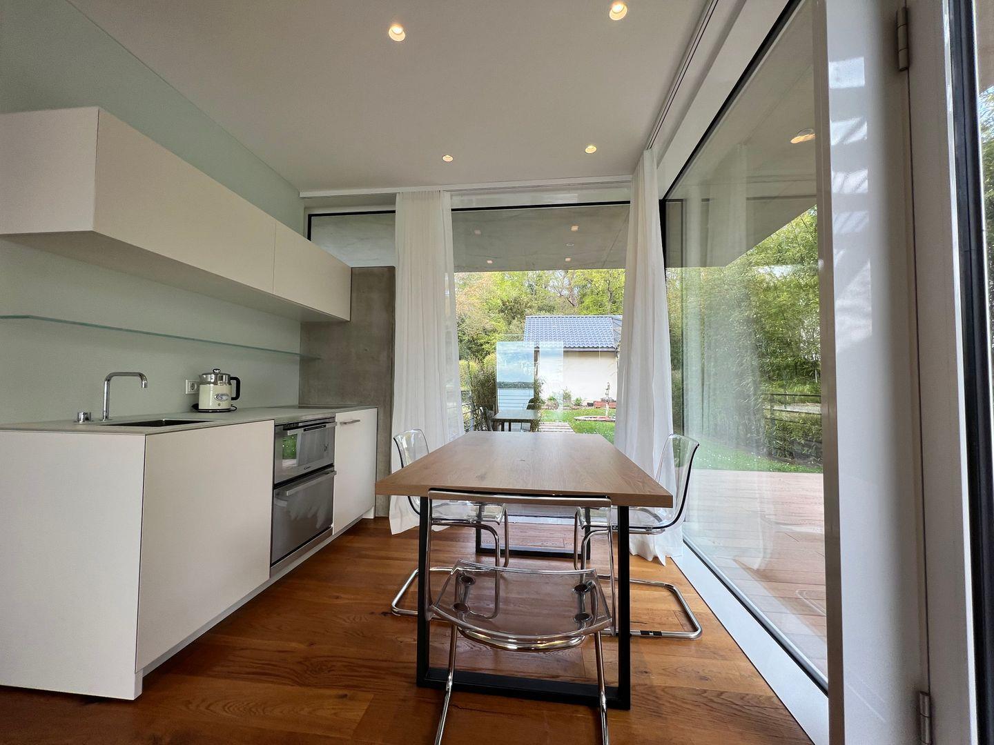?Auf den großzügigen Terrassen und im weitläufigen Außengelände stehen unterschiedliche Sitzbereiche und Liegemöglichkeiten sowie eine Feuerschale und ein kleiner Pool zur Verfügung. Ausreichend Parkmöglichkeiten sowie Ladestation für E-Autos im Hof des Anwesens vorhanden. Haustiere sind nicht erlaubt. Nutzung für Events und Veranstaltungen am Bodensee auf Anfrage.
