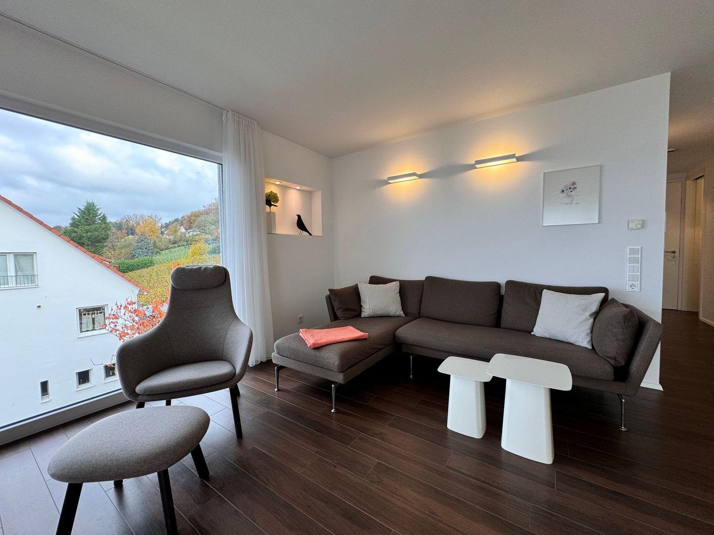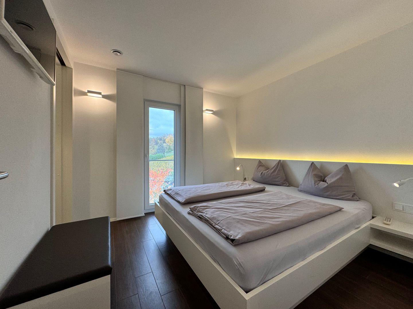 Das Stella Regia Apartment 5 empfängt Sie in Meersburg. In unmittelbarer Nähe zum Bodensee gelegen, verbindet diese großzügige Unterkunft zeitgemäßen Komfort mit einer ausgezeichneten Lage. Das modern gestaltete Apartment befindet sich im zweiten Stock eines im Jahr 2016 erbauten Gebäudes und bietet auf rund 65 m² viel Raum für Erholung und einen angenehmen Aufenthalt.