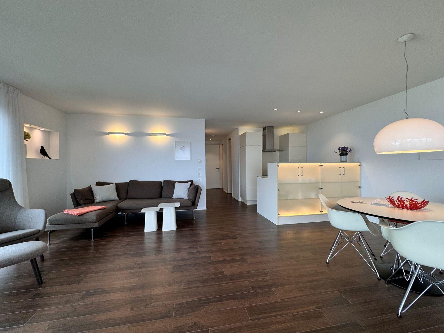 Das Apartment verfügt über zwei Zimmer: ein separates Schlafzimmer und ein einladendes Wohnzimmer mit offener Küche. Die hochwertige Ausstattung umfasst Vinylboden in Wohn- und Schlafbereichen, eine gemütliche Sofaecke und einen separaten Essbereich mit großem Esstisch. Für Familien und Paare bietet das Apartment mit einem Schlafzimmer und zwei vorhandenen Schlafmöglichkeiten ein komfortables Zuhause auf Zeit. Kinder sind in dieser Unterkunft herzlich willkommen. Jugendgruppen sind nicht gestattet, sodass Ruhe und Privatsphäre gewährleistet sind.