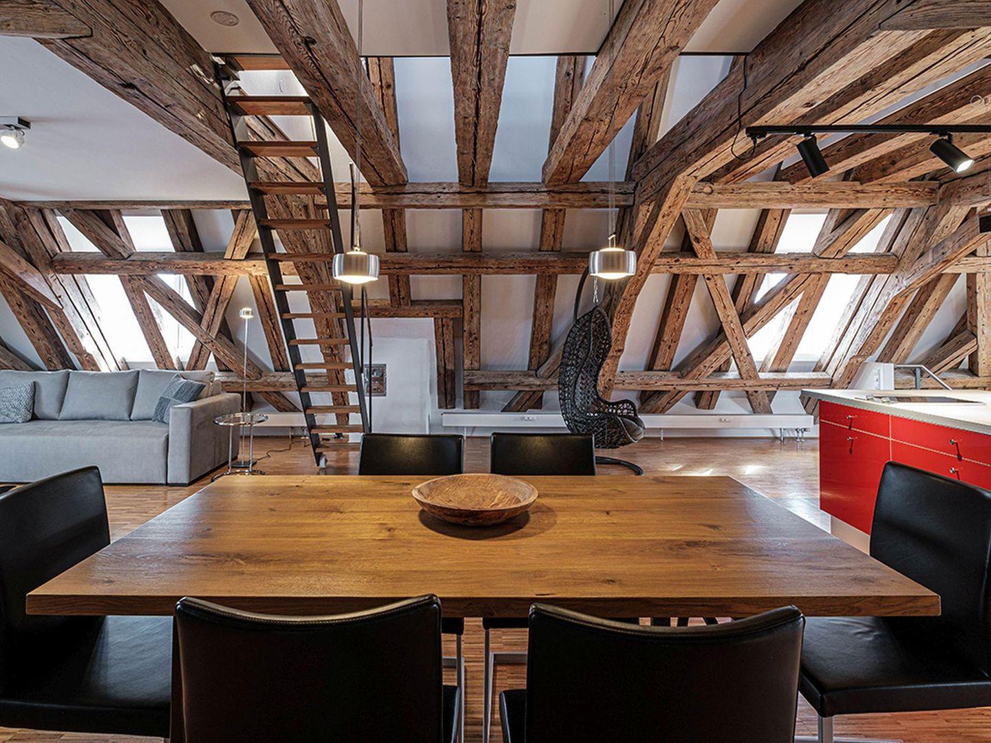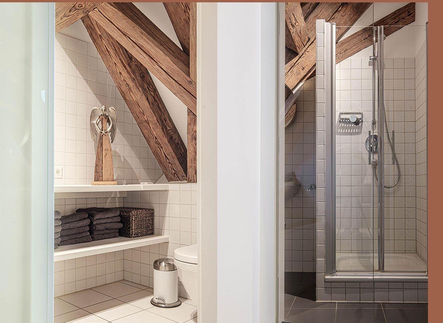 Welcher wird Ihr Lieblingsplatz in diesen außerordentlichen über alle Etagen offenen Räumen? Unter prächtigen Balken, mit vielen reizvollen Winkeln und spektakulären Ausblicken. Hoch oben im Fürstenpalais bietet Ihr Urlaubszuhause viel Komfort mit drei Bädern, einer großzügigen Küchenlandschaft, verschiedenen Sitzgelegenheiten (Schlafsofa) und hochwertiger Ausstattung. Über drei Etagen erfreuen Sie sich an der modernen Einrichtung und Dekoration. Highlights sind die Badewanne mit Seeblick und der französische Balkon weit über dem Schlossplatz. Der Lift bringt Sie bequem an die Wohnungstür. Vorsicht- enge Treppe ins Obergeschoss.