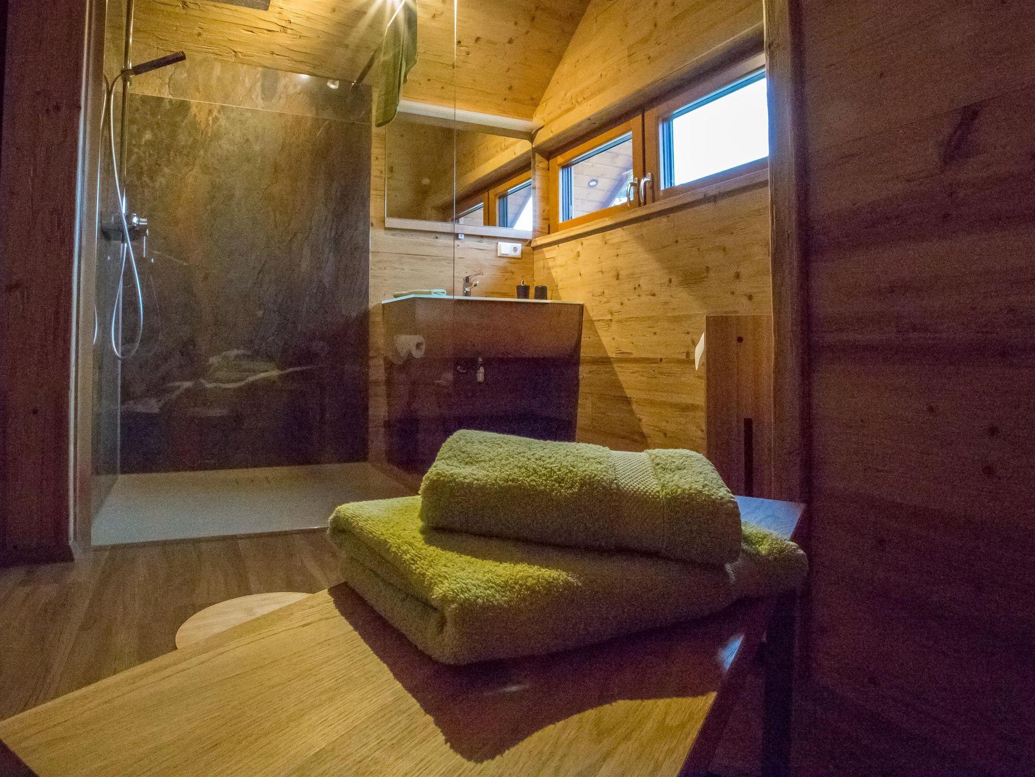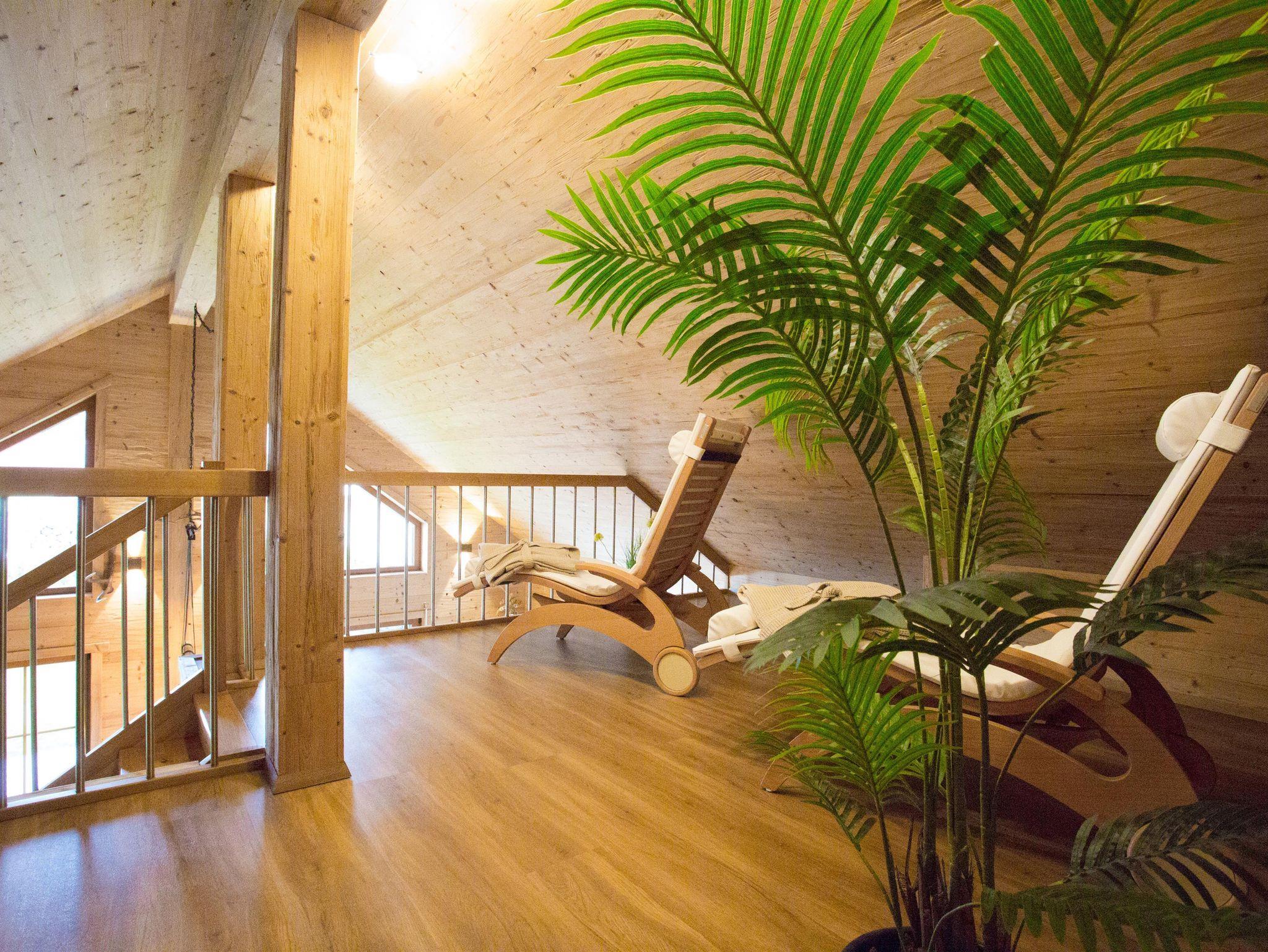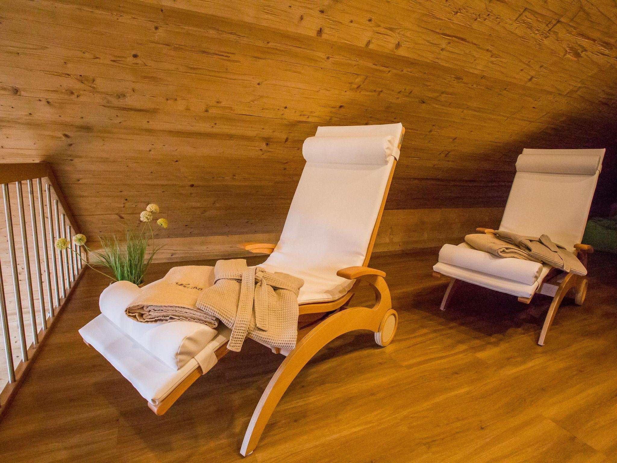 Im Erdgeschoss befindet sich unsere voll ausgestattete Küche mit Kaffeemaschine, Toaster, Backofen, Nespresso Maschine, Kühlschrank mit kleinem Gefrierfach, Kaffee- und Tafelservice, Töpfe und Pfannen, Wasserkocher, Geschirrspülmaschine, E-Herd mit Induktion sowie einen Küchentresen mit 2 Barhockern. Der offene Wohnbereich mit einem Esstisch für 6 Personen schließt direkt an. Das Haus verfügt über 2 Schlafzimmer mit jeweis 2 Doppelbetten, 1 weitere Schlafmöglichkeit auf dem gemütlichen Schlafsessel im 1. Stock. Das Haus verfügt über 2 Bäder mit Dusche und WC, eins im Erdgeschoss und eins im 1. Stock. Der 1. Stock ist dem Wellnessbereich gewidmet. Dieser verfügt über 2 Wellnessliegen und einer Infrarotkabine, ebenso befindet sich dort der gemütliche Schlafsessel. Dieser Bereich lädt zum Verweilen bei schlechtem Wetter ein, kuschelige Bademäntel mit Saunahandtücher runden das Wellnessprogramm noch ab.