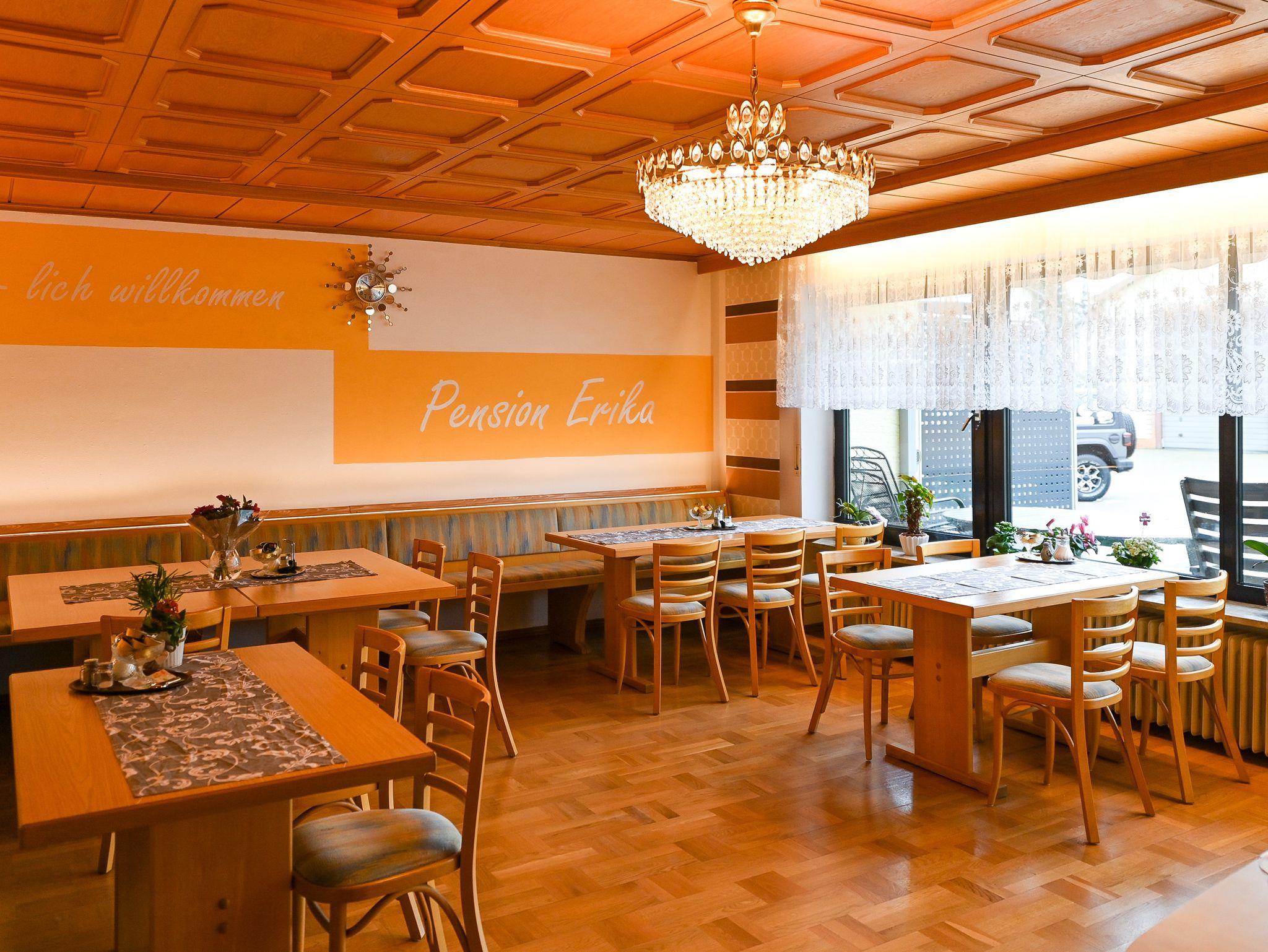 In unserer familiär geführten Pension in ruhiger Lage erwarten Sie gemütliche Zimmer mit Dusche und WC, teilweise mit Balkon oder Terrasse. In jedem Zimmer steht Ihnen ein Farbfernseher mit SAT-Anschluss zur Verfügung. Außerdem können Sie kostenlos unseren WLAN-Anschluss nutzen. Ein reichhaltiges Frühstück servieren wir Ihnen morgens in unserem gemütlich eingerichteten Aufenthaltsraum. Gartenmöbel und eine Liegewiese laden im Sommer zum Entspannen ein. Sie können bei uns im Haus zu Abend essen, wir bieten warme und kalte Gerichte zu günstigen Preisen an.