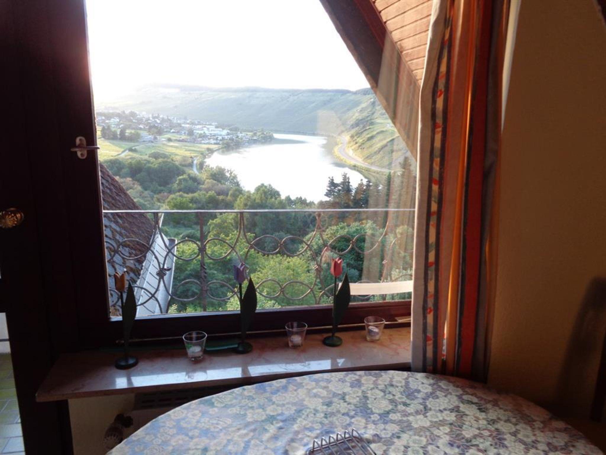 1. Etage, 2 Schlafzimmer je mit Duschbad, 1 Wohnzimmer mit Kochzeile und Balkon mit Blick auf die Mosel.