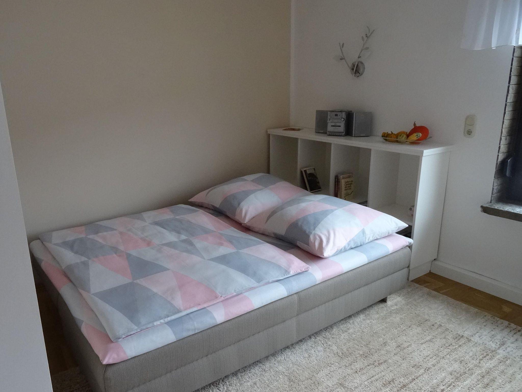 Im Erdgeschoss befindet sich neben dem Eingangsbereich das große Bad. Im 1. Obergeschoss findet man das Wohnzimmer ausgestattet mit Flachbild-TV, Radio mit CD, Sitzgruppe (Tisch mit 4 Stühlen) und Sofa mit Schlaffunktion für 2 Personen sowie auch die voll ausgestattete Küche mit Herd, Geschirrspüler, Mikrowelle, Kühlschrank mit Gefrierkombi Kaffeemaschine, Wasserkocher und Toaster. In der obersten und letzten Etage befinden sich die Schlafräume und ein kleines Bad mit WC. Im Vorraum steht ein Einzelbett. Im danebenliegenden Schlafzimmer können 2 weitere Personen im Doppelbett schlafen. Außerdem stehen Ihnen Bettwäsche & Handtücher, Föhn, Bügelbrett mit Bügeleisen zur kostenfreien Nutzung zur Verfügung. Optional besteht auch die Möglichkeit auf Anfrage ein Babyreisebett oder einen Hochstuhl zu erhalten.