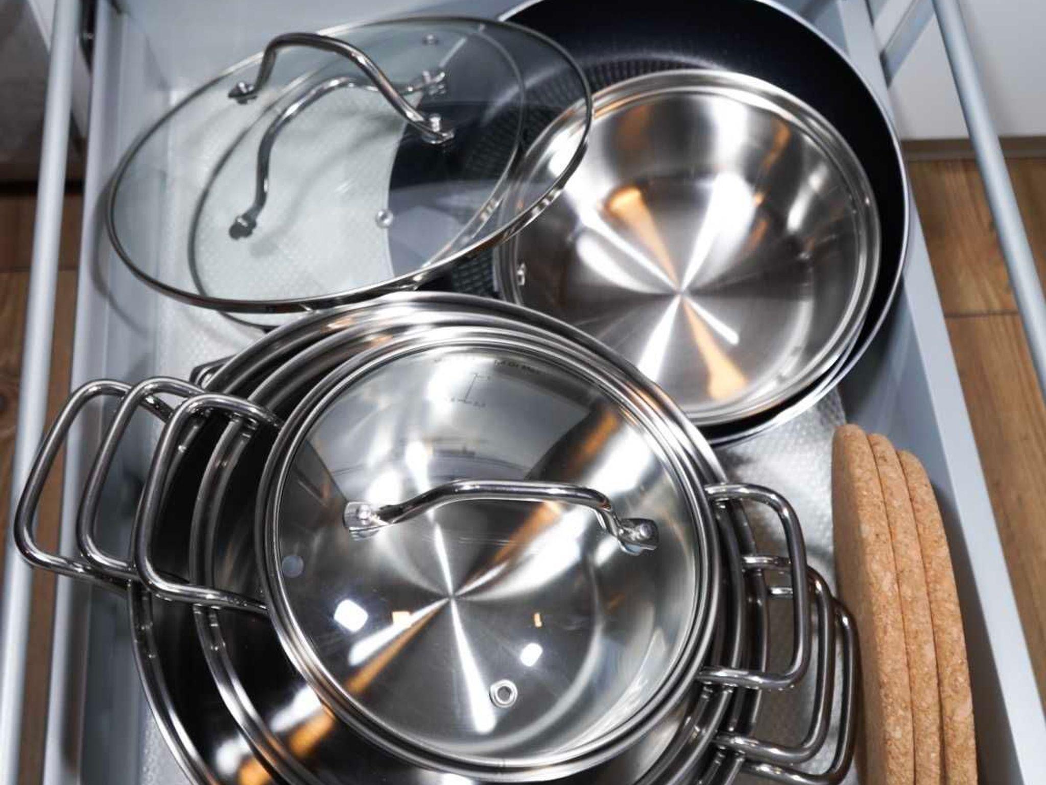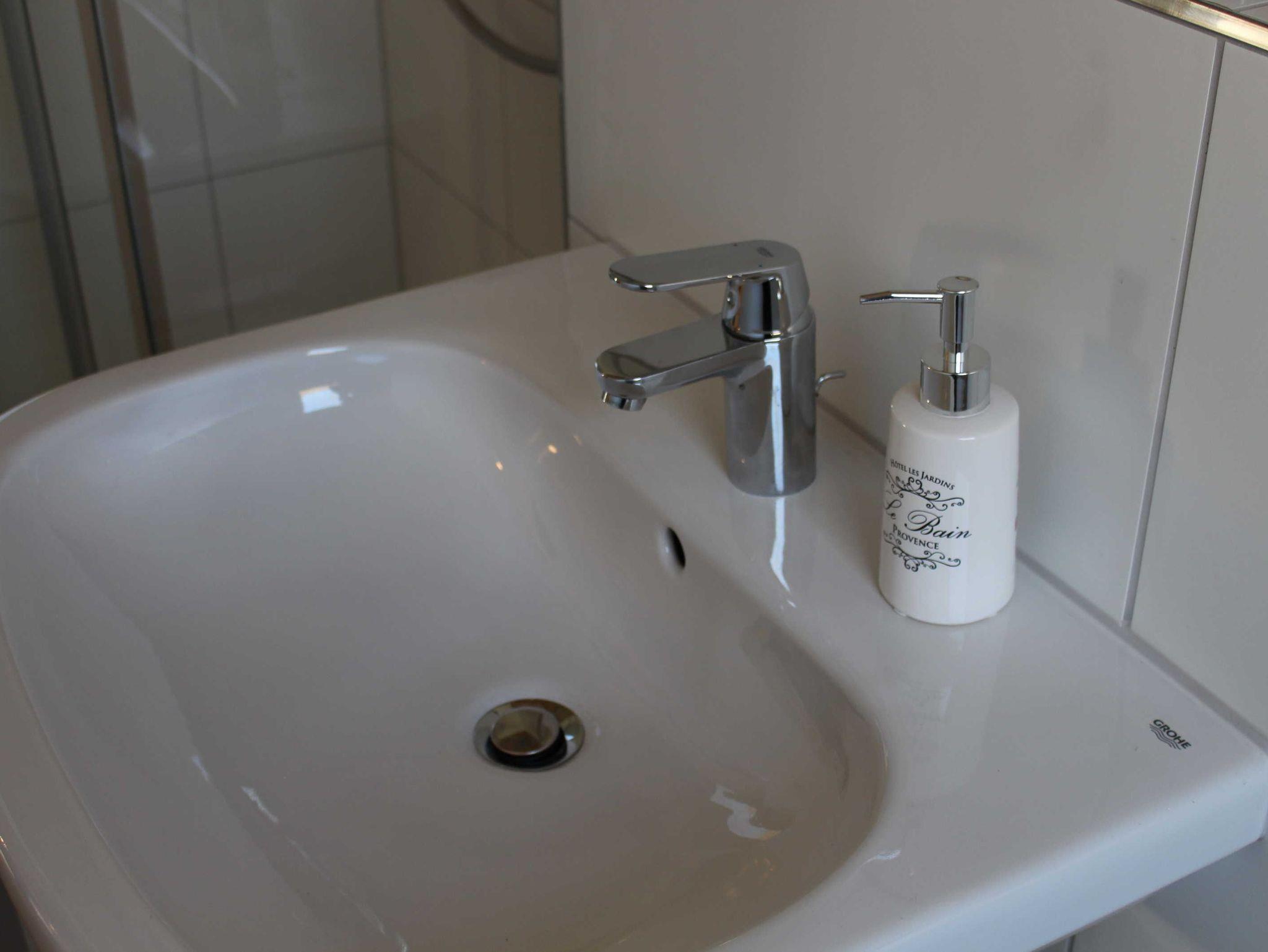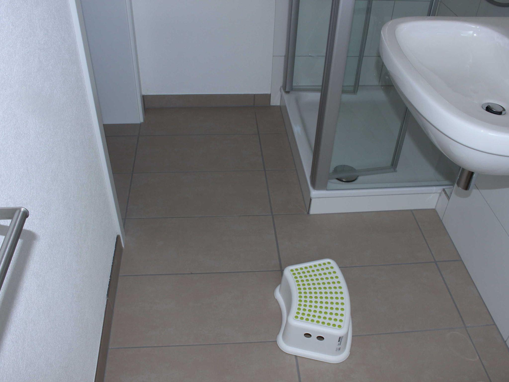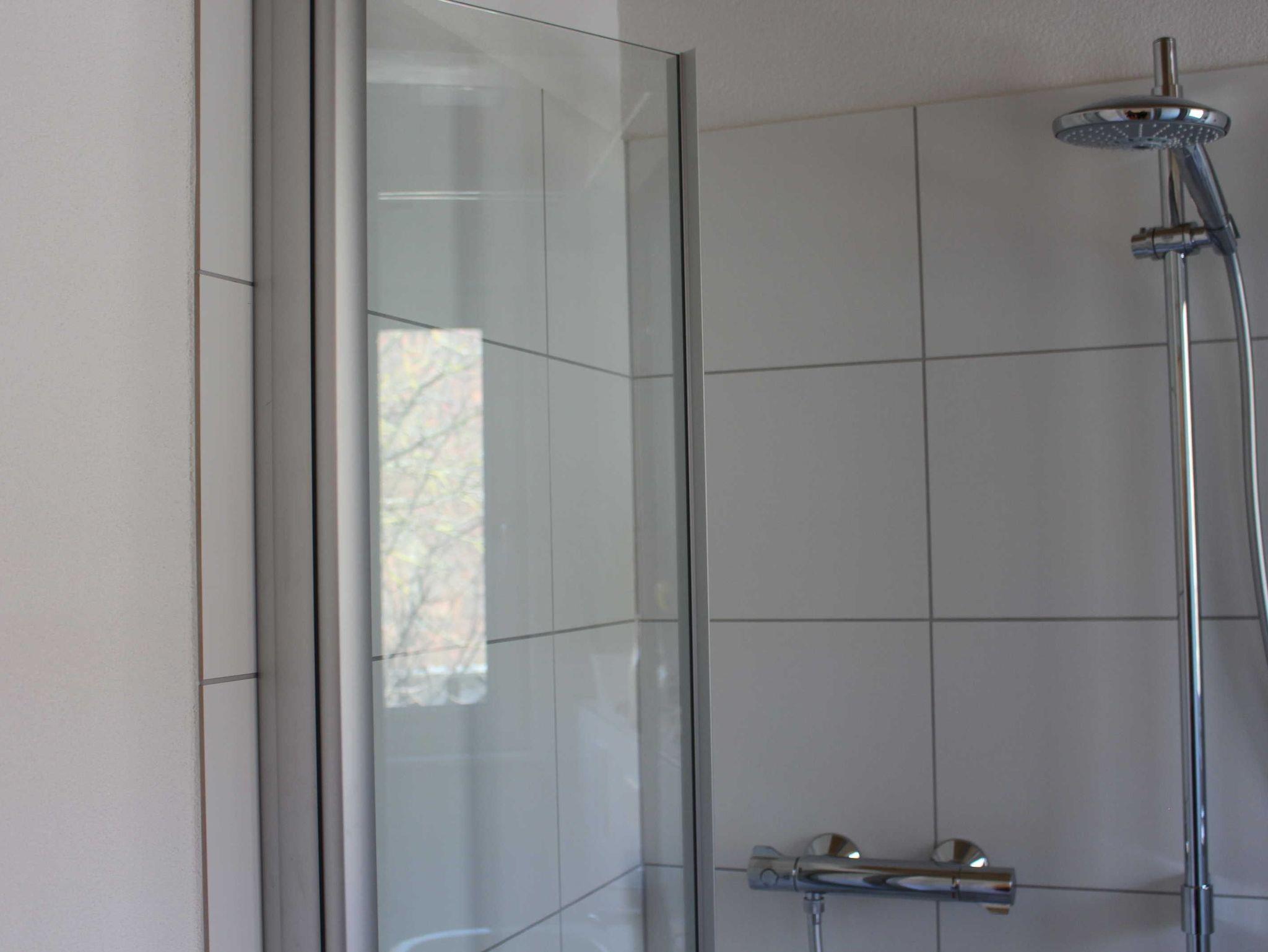 Im Bad befindet sich eine hochwertige Sanitärausstattung sowie ausreichend Bade- und Handtücher und ein Föhn. Alle Betten haben Komfortbettwäsche in der Größe 1,55x2,20 m und Matratzen in H2/H3 Qualität für unterschiedliche Gewichtsbereiche. Für Ihre Kleidung stehen eine Garderobe, Kleiderständer und offene Regale zur Verfügung.