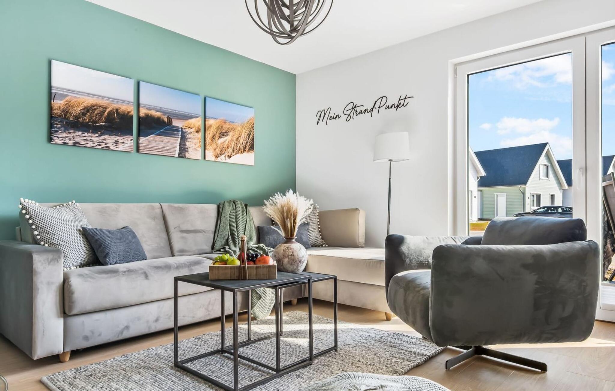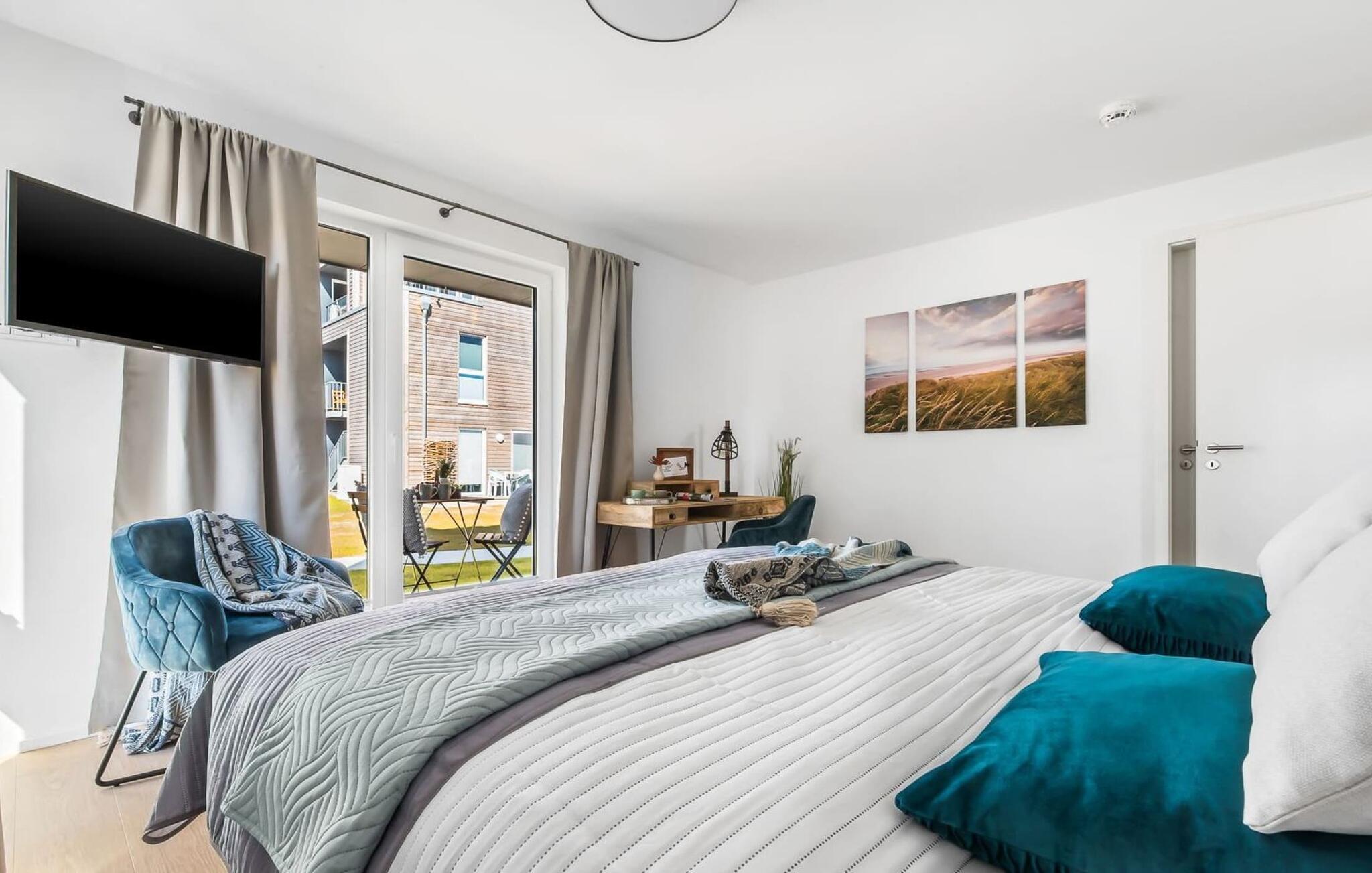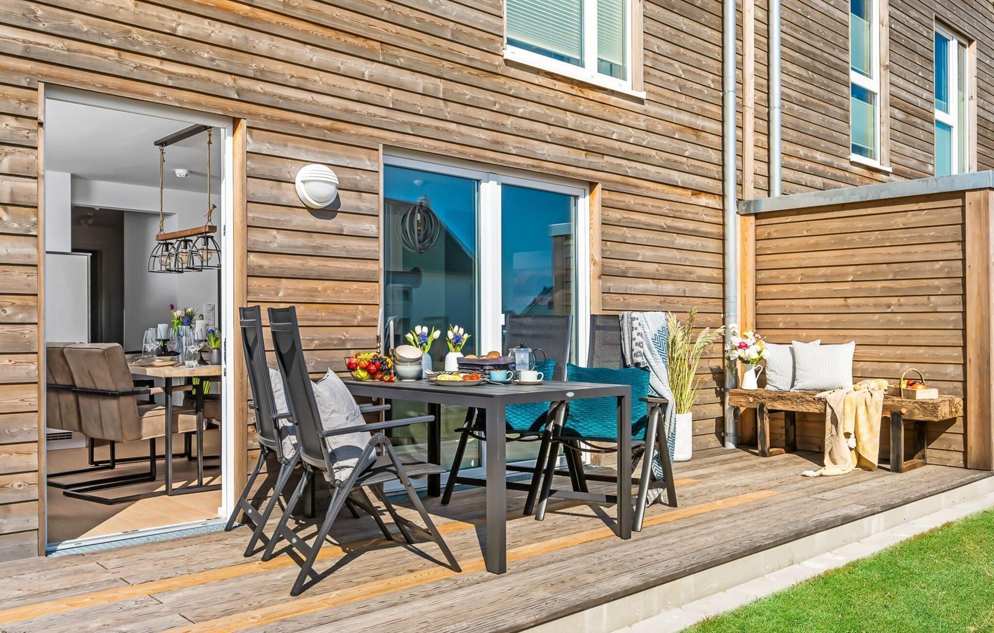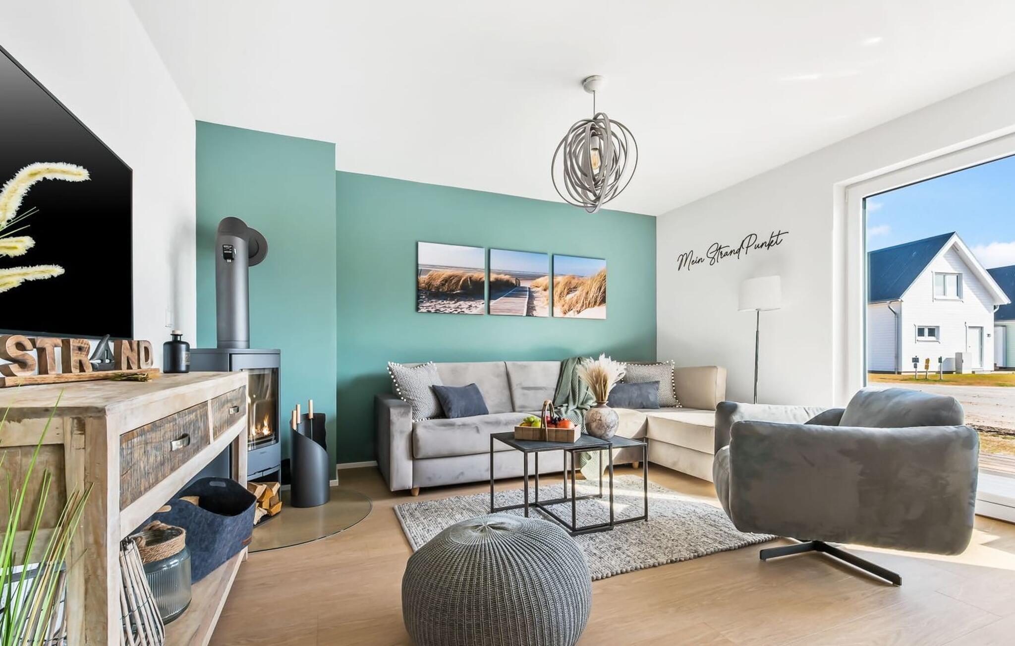 My StrandPoint er en rummelig ferielejlighed i stueetagen for op til fire personer. Havnepromenaden i OstseeResort Olpenitz med dets voksende udbud og indkøbsmuligheder samt sejl- og sportsbådshavnen ligger kun få meter fra ferielejligheden. Den maritime minigolfbane og Weidefelder-stranden ligger i umiddelbar nærhed og byder på sjov for hele familien. Med vinduesfronten fra gulv til loft og den store tilstødende terrasse er den åbne og lyse stue/alrum lejlighedens hjerte. I kan tilbringe afslappende aftener i den hyggelige opholdsstue. Uanset om I har en god bog i hånden eller til en filmaften sammen. Selv i dårligt vejr kan I finde jer godt tilpas her. Den knitrende pejs giver hyggelig varme og hygge. Det integrerede køkken er perfekt udstyret og lader intet tilbage at ønske. At lave mad sammen er sjovt! I kommer direkte ind på den store terrasse fra opholdsstuen. Nyd solen fra morgen til aften på de medfølgende havemøbler. Lad dagen slutte af med en grillaften sammen. Start dagen med udsigt over havnebassinet. I soveværelset er der udgang til den anden terrasse og walk-in-closet. En dobbelt boxmadras er tilgængelig i soveværelset til afslapning om natten. Der er to ekstra sovepladser på den komfortable sovesofa i stuen. Der er indrettet et lille 'feriekontor' område i soveværelset til dig, hvis I planlægger at kombinere det hyggelige med det nyttige. Badeværelset med en rummelig regnbruser i gulvniveau og en infrarød sauna byder på uforglemmelige wellness-øjeblikke og sikrer den perfekte afslutning på en begivenhedsrig feriedag. Ferielejligheden har egen ekstra bred parkeringsplads, som ligger få meter fra indgangen til ferielejligheden. Vores favoritsted: Fald i søvn og vågn op i en behagelig seng med udsigt over havnen... Bemærk venligst: OstseeResort Olpenitz er meget populært, og der bygges fortsat i parken. Ikke desto mindre kan I se frem til en 5-stjernet standard og et førsteklasses ophold. Byggeaktiviteterne kommer ikke til at forstyrre jer på ferien, og derfor gives der ikke yderligere afslag i prisen.