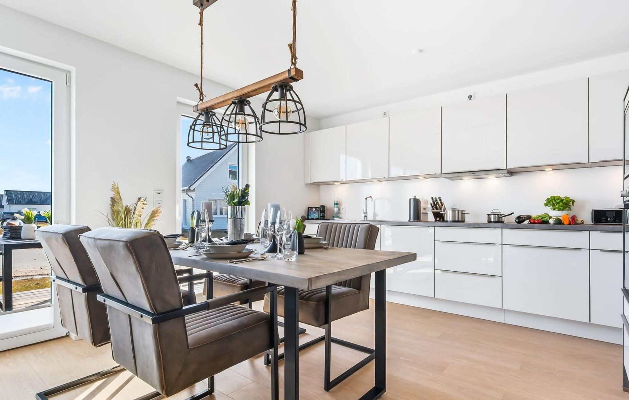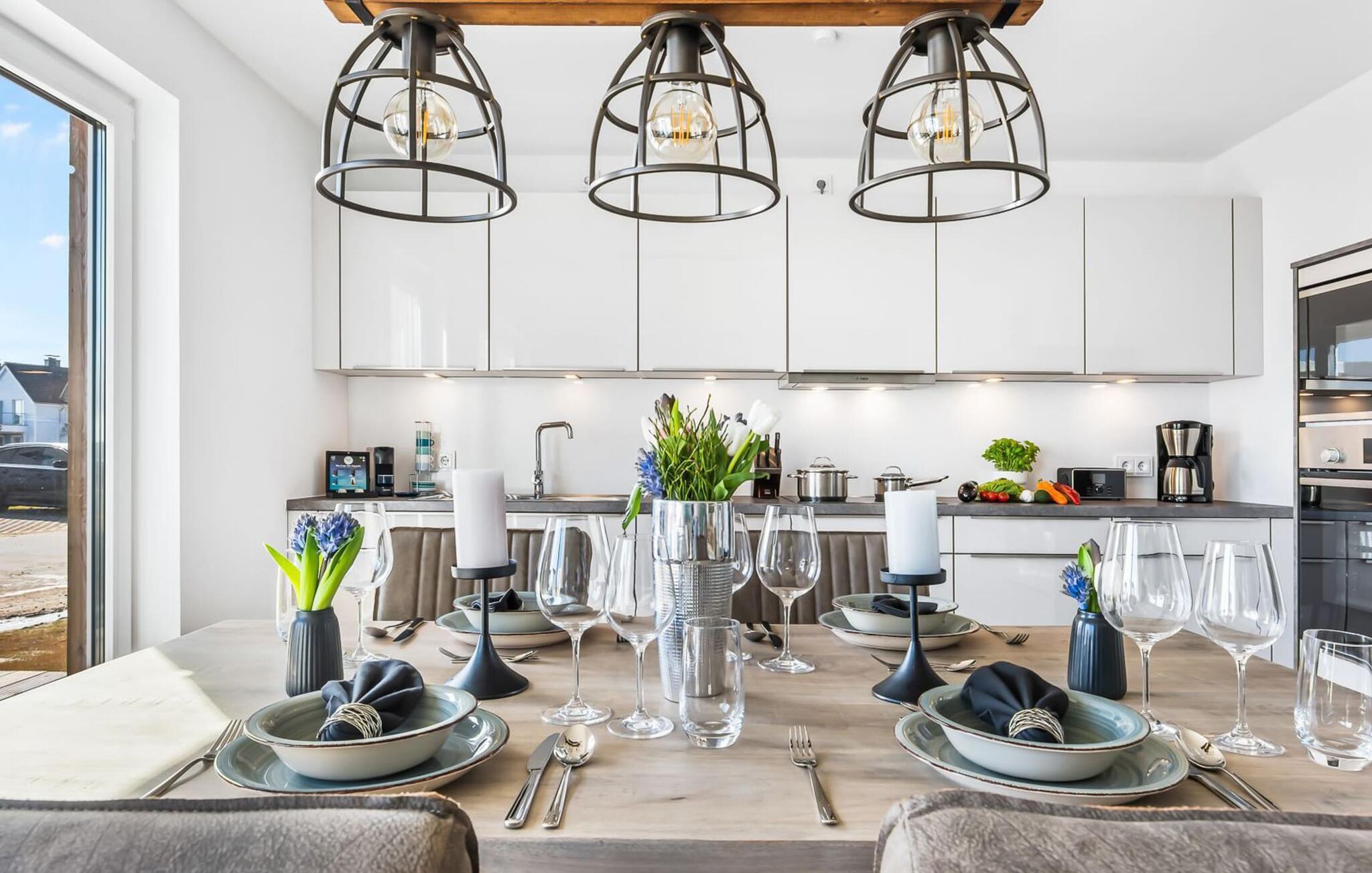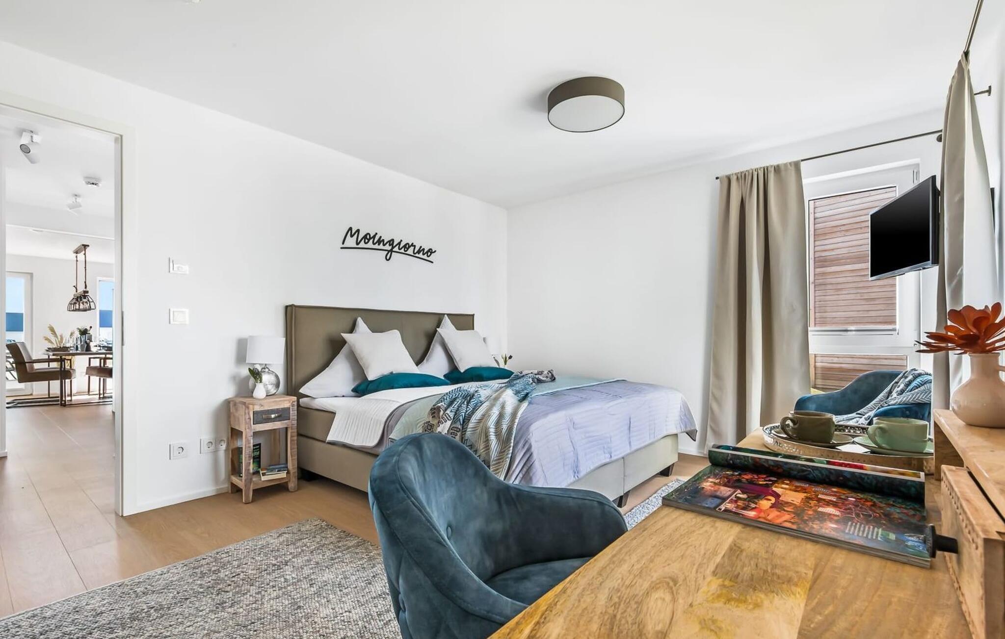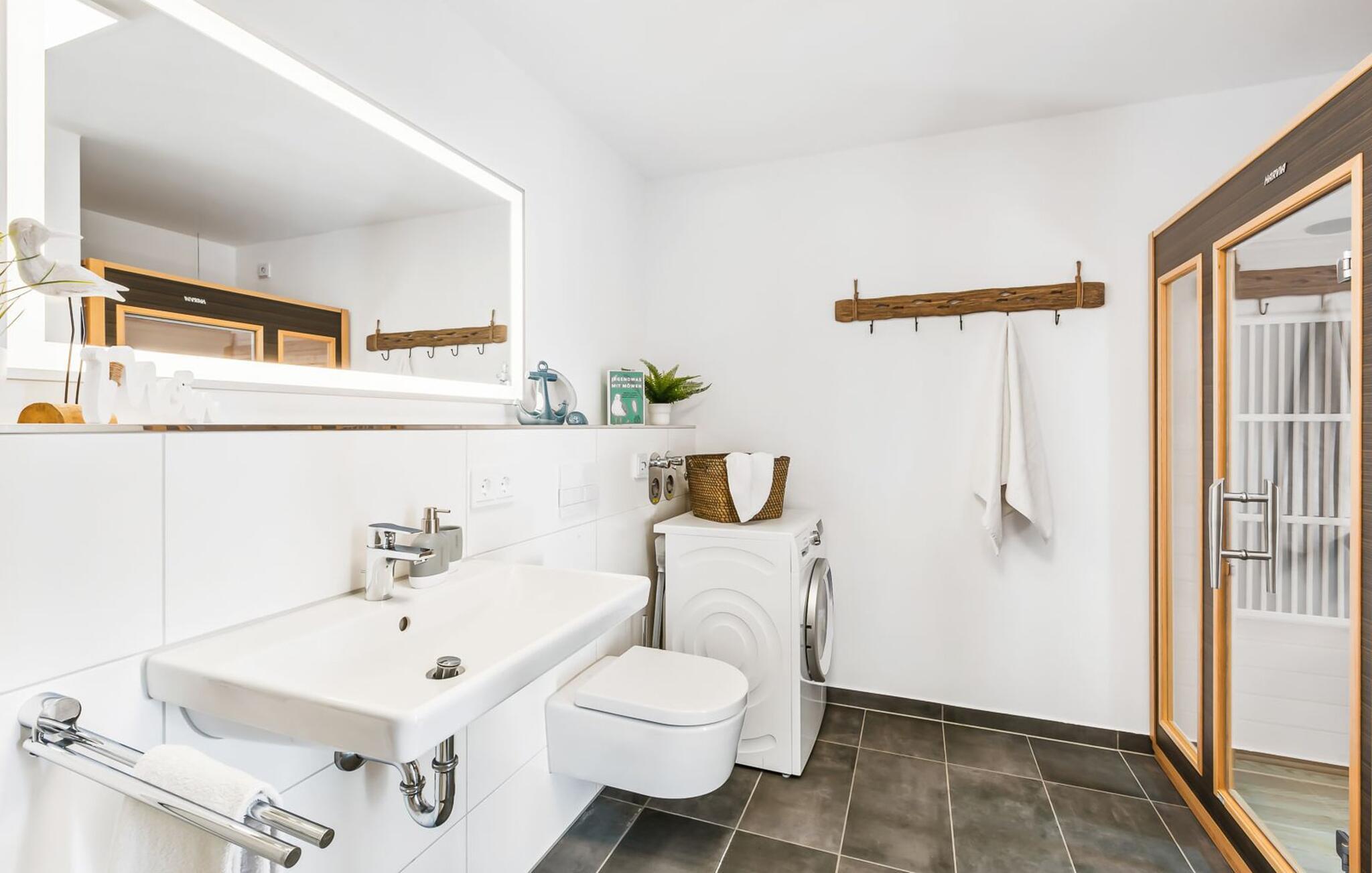 My StrandPoint er en rummelig ferielejlighed i stueetagen for op til fire personer. Havnepromenaden i OstseeResort Olpenitz med dets voksende udbud og indkøbsmuligheder samt sejl- og sportsbådshavnen ligger kun få meter fra ferielejligheden. Den maritime minigolfbane og Weidefelder-stranden ligger i umiddelbar nærhed og byder på sjov for hele familien. Med vinduesfronten fra gulv til loft og den store tilstødende terrasse er den åbne og lyse stue/alrum lejlighedens hjerte. I kan tilbringe afslappende aftener i den hyggelige opholdsstue. Uanset om I har en god bog i hånden eller til en filmaften sammen. Selv i dårligt vejr kan I finde jer godt tilpas her. Den knitrende pejs giver hyggelig varme og hygge. Det integrerede køkken er perfekt udstyret og lader intet tilbage at ønske. At lave mad sammen er sjovt! I kommer direkte ind på den store terrasse fra opholdsstuen. Nyd solen fra morgen til aften på de medfølgende havemøbler. Lad dagen slutte af med en grillaften sammen. Start dagen med udsigt over havnebassinet. I soveværelset er der udgang til den anden terrasse og walk-in-closet. En dobbelt boxmadras er tilgængelig i soveværelset til afslapning om natten. Der er to ekstra sovepladser på den komfortable sovesofa i stuen. Der er indrettet et lille 'feriekontor' område i soveværelset til dig, hvis I planlægger at kombinere det hyggelige med det nyttige. Badeværelset med en rummelig regnbruser i gulvniveau og en infrarød sauna byder på uforglemmelige wellness-øjeblikke og sikrer den perfekte afslutning på en begivenhedsrig feriedag. Ferielejligheden har egen ekstra bred parkeringsplads, som ligger få meter fra indgangen til ferielejligheden. Vores favoritsted: Fald i søvn og vågn op i en behagelig seng med udsigt over havnen... Bemærk venligst: OstseeResort Olpenitz er meget populært, og der bygges fortsat i parken. Ikke desto mindre kan I se frem til en 5-stjernet standard og et førsteklasses ophold. Byggeaktiviteterne kommer ikke til at forstyrre jer på ferien, og derfor gives der ikke yderligere afslag i prisen.