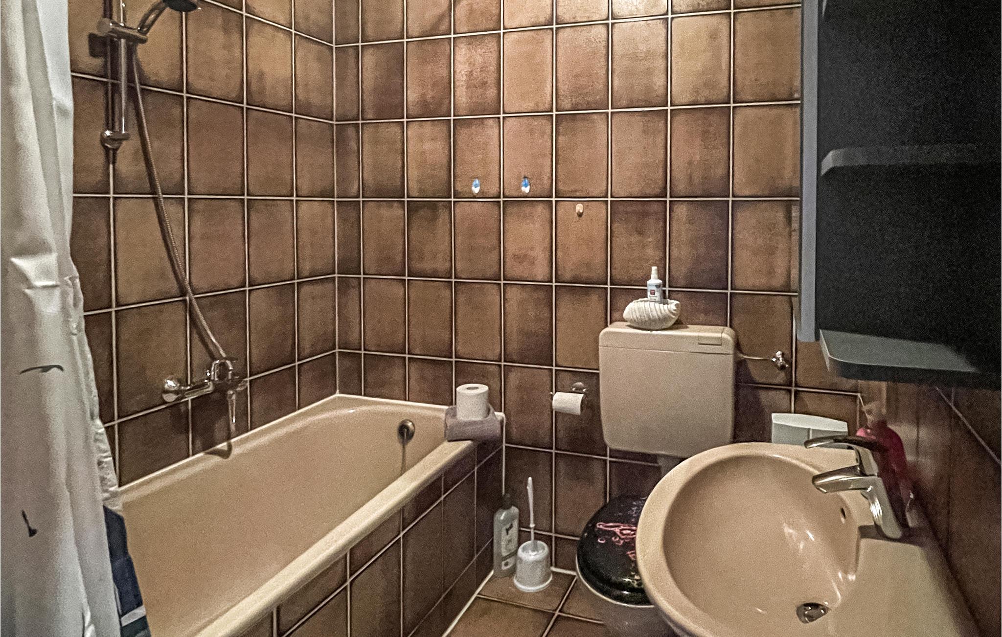 Badeværelse 5m2 (nr. 1) - WC. Varmt og koldt vand. Håndbruser, badekar og bruser
