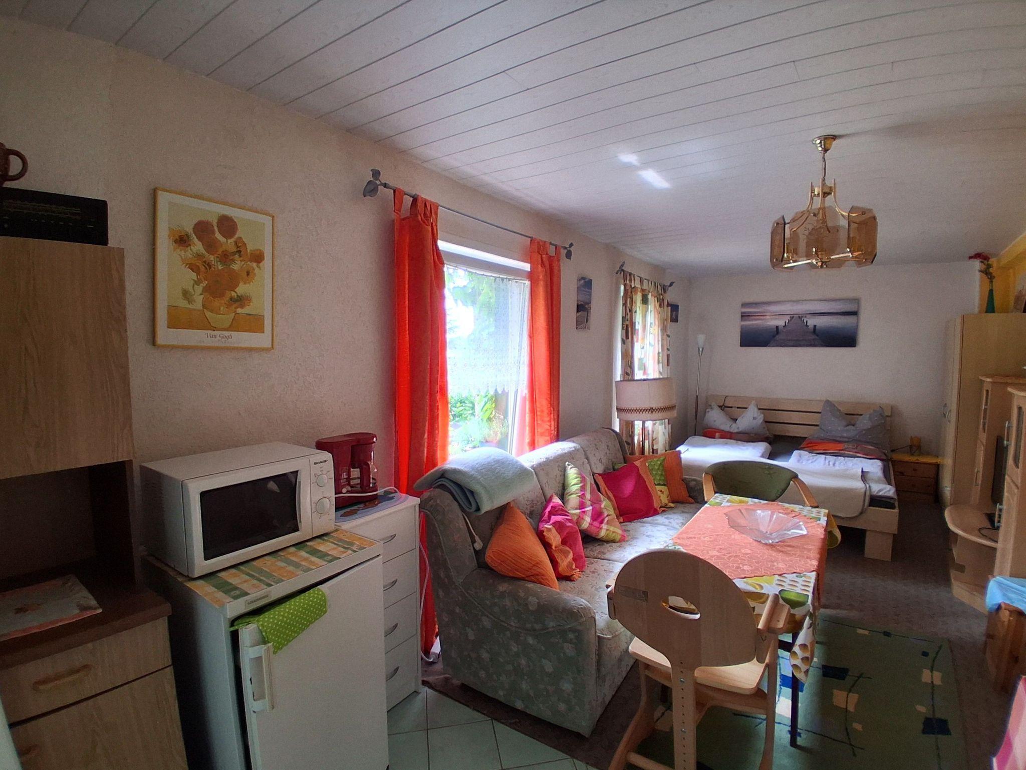 Die Ferienwohnung ist ca. 120 m² groß und befindet sich im Erdgeschoss. Sie verfügt über drei kombinierte Wohn- & Schlafbereiche mit Sofa und Doppelbetten, zwei Bäder mit Dusch/WC einer separaten Küche. Im großen kombi. WZ/SZ befindet sich ein Fernseher und im kleinen WZ/SZ ein separate Kochgelegenheit. Die Küche ist ausgestattet mit einer Küchenzeile mit Kaffeemaschine, Toaster, Wasserkocher und Kühlschrank. Die Erstausstattung Bettwäsche und Handtücher sind im Gesamtpreis enthalten. Im Garten steht Ihnen eine Sitzecke und ein Grill zur Verfügung, mit dem Sie einen perfekten Grillabend einplanen können. Außerdem befindet sich im Garten ein Trampolin und ein Basketballkorb.