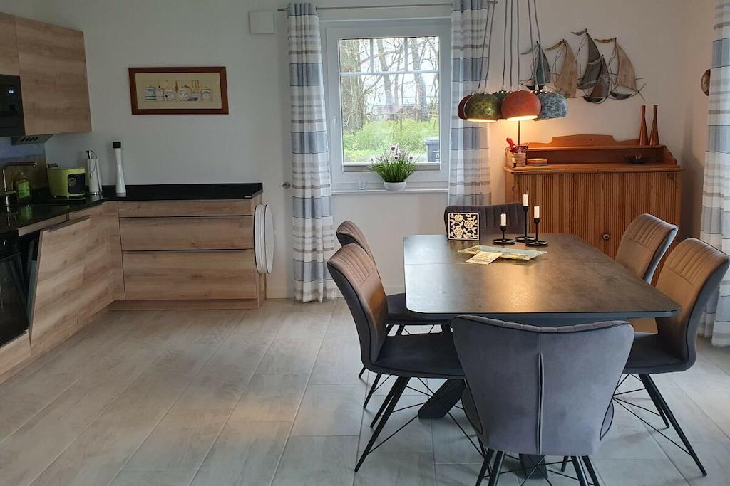 Nybygget feriehus med stråtag og tre soveværelser i udkanten af naturreservatet Üselitzer Wiek på den sydlige del af øen Rügen. Üselitzer Wiek-bugten ligger kun omkring 200 meter væk. Langt fra højhushotellerne og de typiske badebyer oplever du Rügen i sin uspolerede form. Beliggende i hjertet af et europæisk fuglereservat har du mulighed for at observere sjældne og beskyttede fuglearter (skarver, traner, fiskehejrer, havørne, grågæs og mange flere) i deres hvile- og ynglesæson. Omgivelserne byder på fred og ro, hvilket sikrer en afslappende ferie.