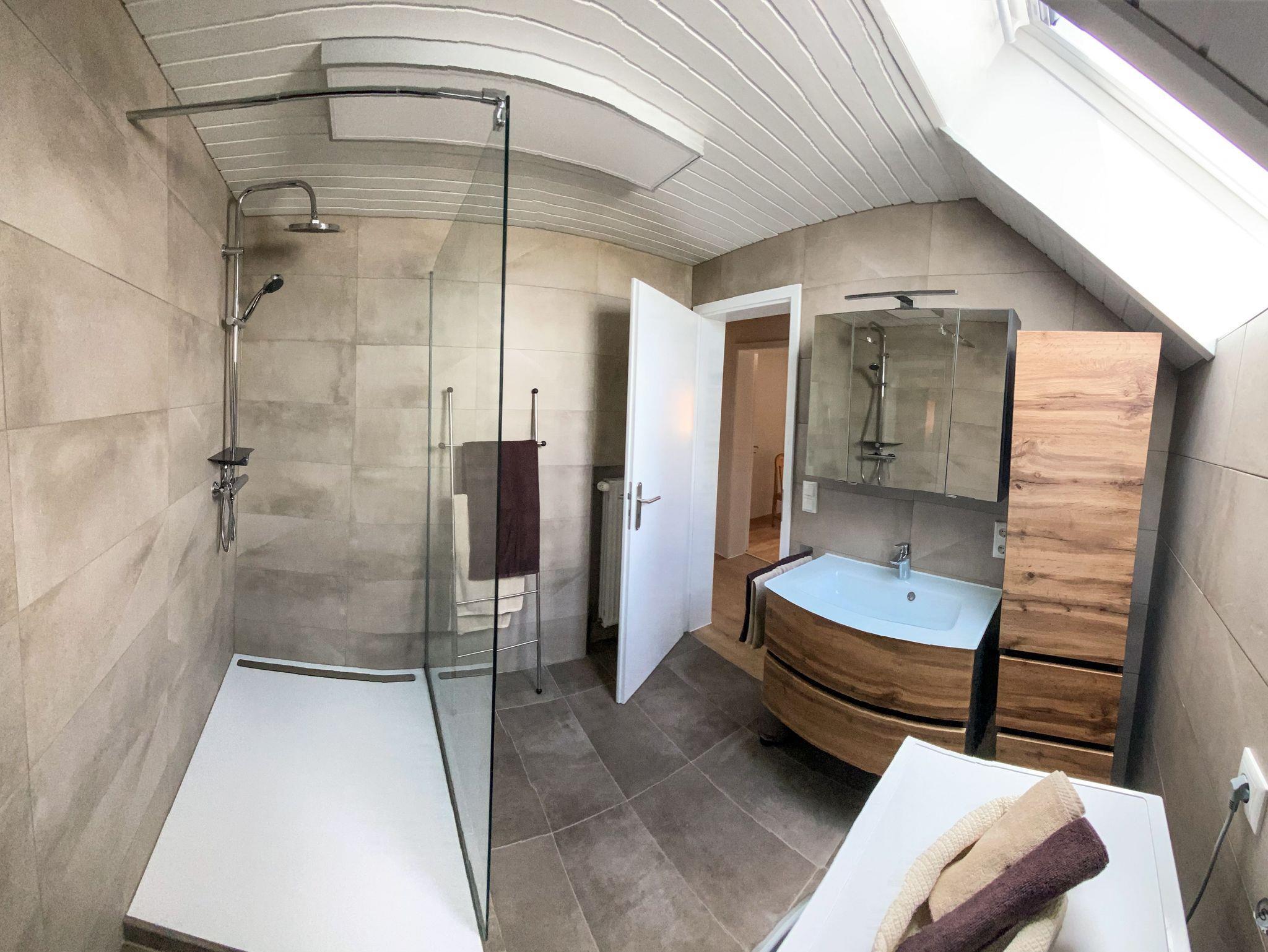 Badezimmer mit Dusche,Föhn und Waschmaschine. Separates WC.