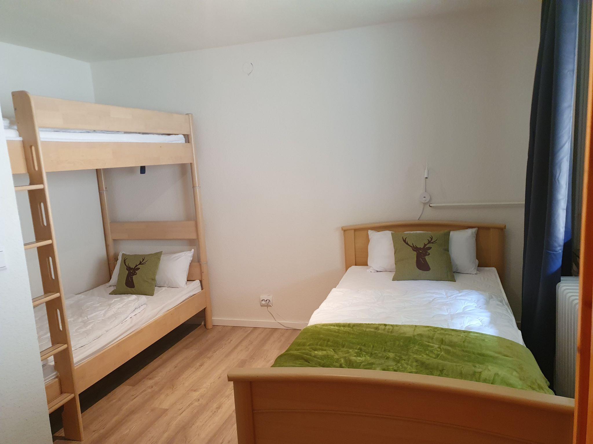 Our house offers single, double and multi-bed rooms. The rooms are friendly and brightly furnished, some with shower and WC. On the ground floor there is a well-equipped kitchen with gas cooker and dishwasher as well as a cosy guest room with bar, tiled stove and pool table. Another small lounge with TV and games is located next to the parlour.