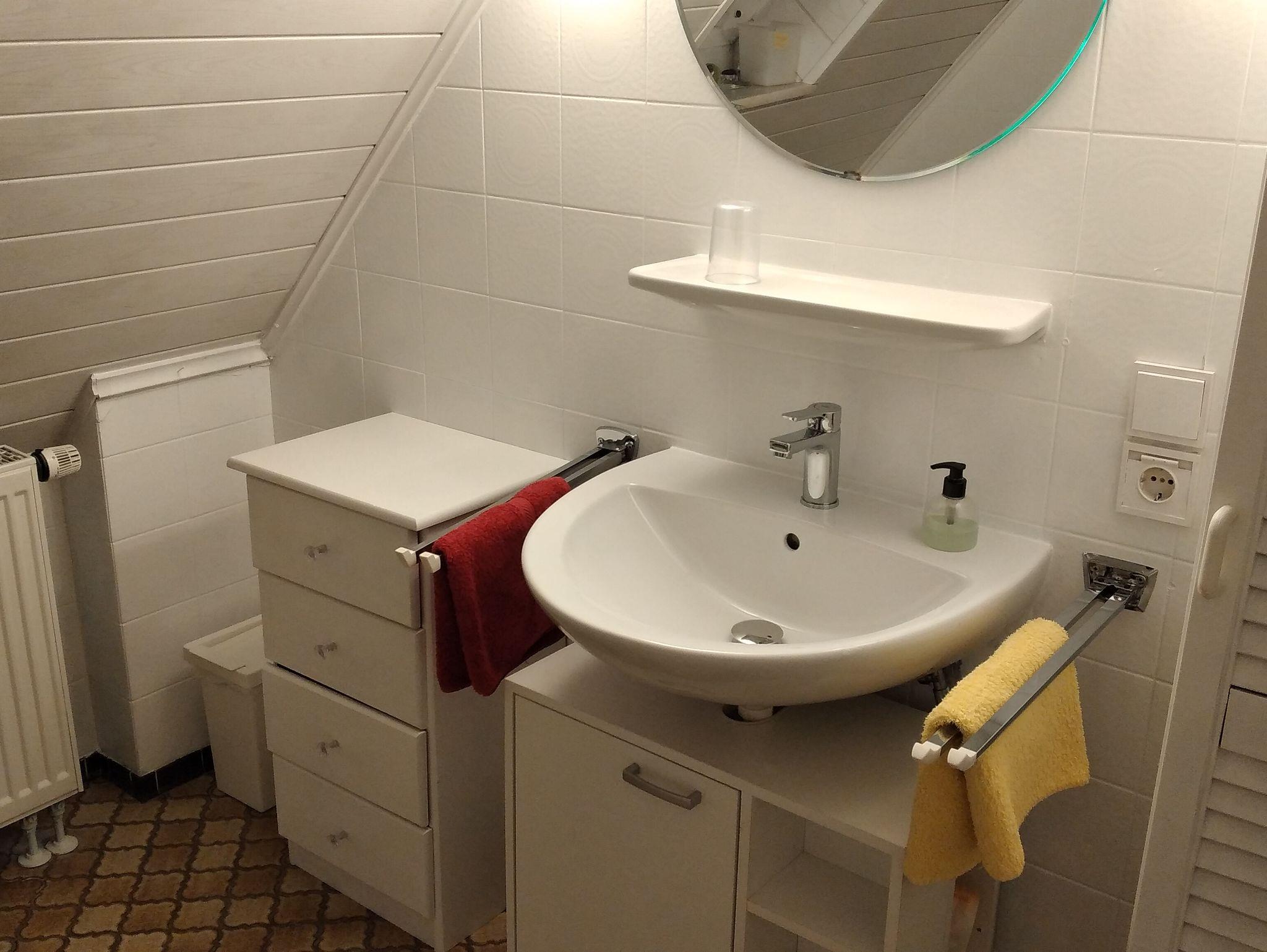 Die ca. 65 qm Ferienwohnung, separatem Eingang über eine Außentreppe, im Dachgeschoss eines alten Bauernhauses. Mit großem Wohnraum - offener Bauweise - mit Doppelbett, Essecke und Wohnzimmerbereich und Küche. Ein kleines Zimmer separat.
