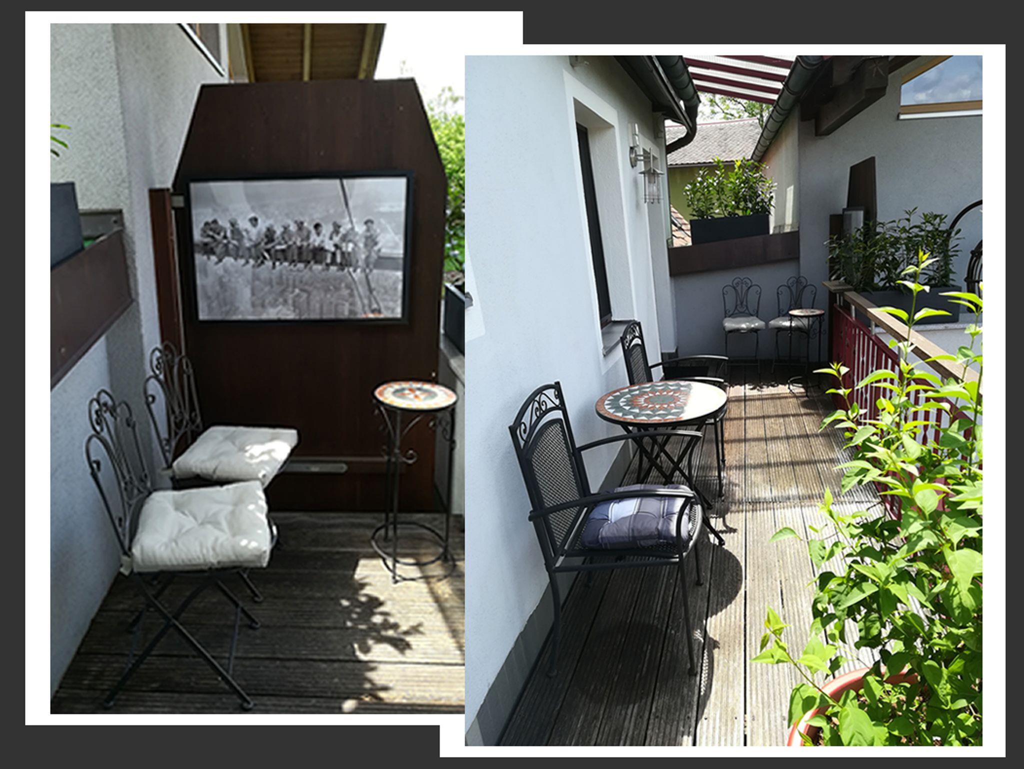 Die Wohnung besitzt einen möblierten Balkon mit Teilüberdachung, begrünt und mit Blick in die Natur.