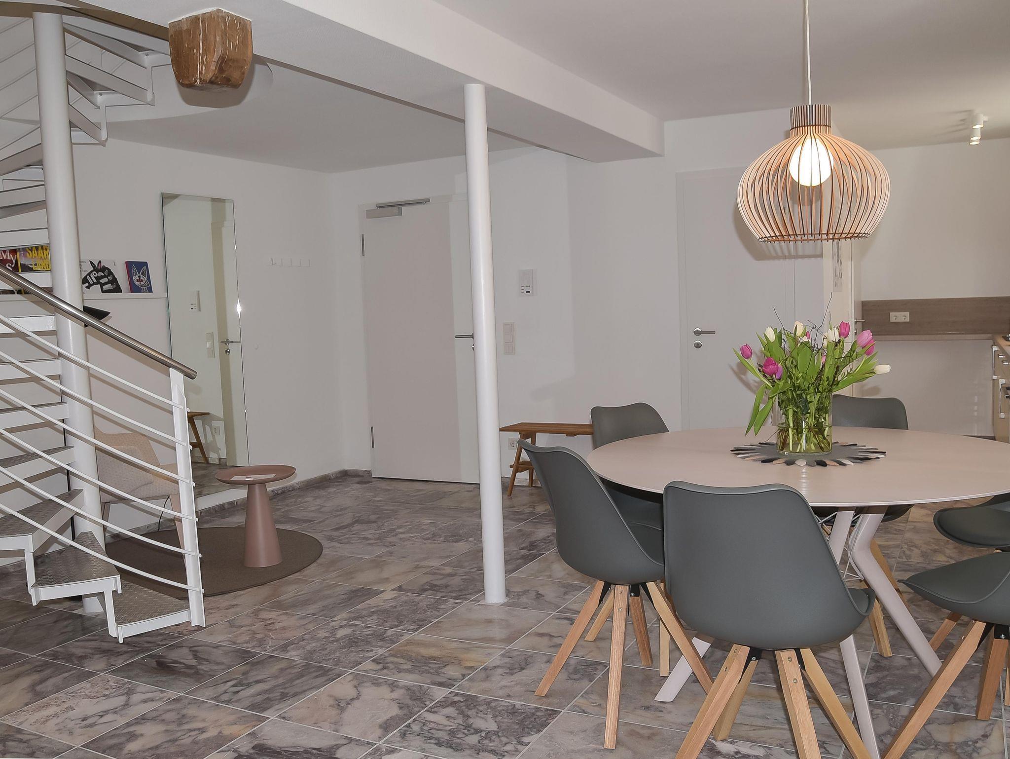 Appartement Piatti ist eine zweigeschossige Maisonettewohnung für 2-3 Personen in einem denkmalgeschützen Stadthaus. Küche, Essbereich, Wohnzimmmer, Leseecke, Schreibtisch, Gäste WC und ein kleinen Abstellraum sind unten. Über eine Wendeltreppe erreichen Sie den Schlafbereich mit offenm Sprengwerk. Die alten Balken (obwohl der Raum sehr hoch ist, müssen Sie sich bei einigen Balken leicht bücken) haben wir abgeschliffen. Hier ist ein Doppelbett, Schrank Sessel und eine Schlafcouch ( 150 x 200 cm ) und das Bad. Im Keller finden Sie Waschmaschine und Trockner und ein Fahrradraum. Ausgezeichnet mit 5 Sternen