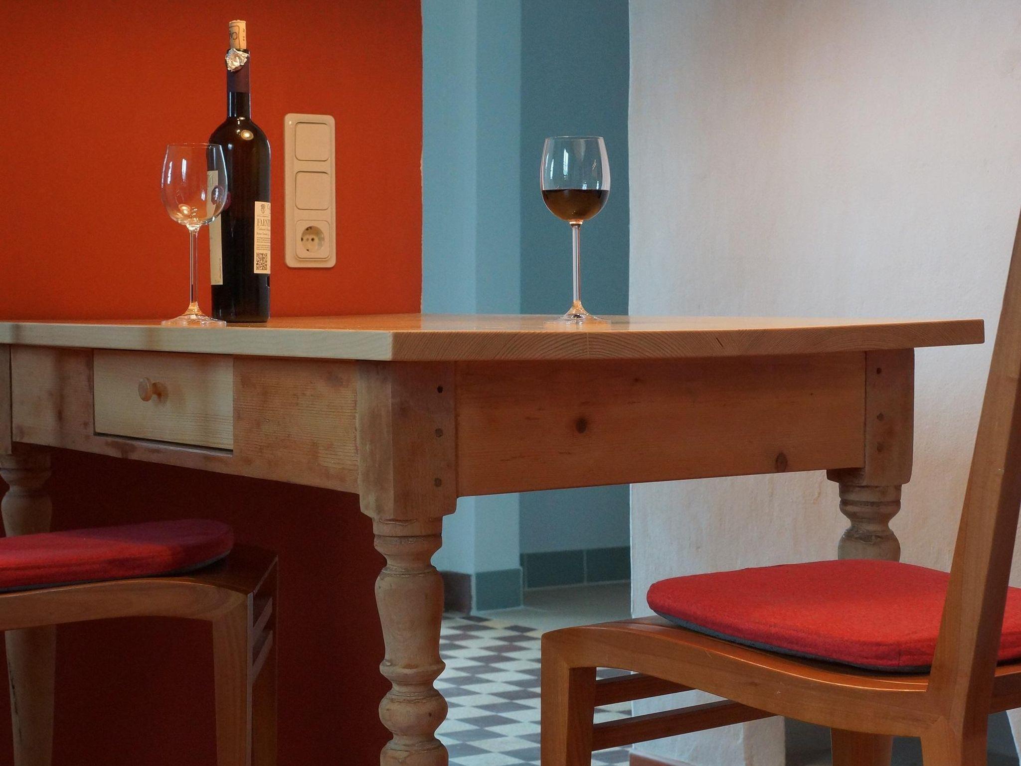 Auf 57 m² Wohnfläche bietet die Ferienwohnung Platz für zwei Personen. Die hohen Decken und Fenster machen die Wohnung hell und geräumig. Der offene Wohn- und Essbereich mit Kaminofen lädt zum gemütlichen Kochen und Essen ein, ein Sofa mit Fernseher zum Entspannen am Abend. Die Küche ist mit zwei Kochplatten, einem Kühlschrank mit Gefrierfach, Wasserkocher, Kaffeemaschine und Toaster ausgestattet. Eine Auswahl an Bio-Tees und Fairtrade-Kaffee steht zur Verfügung. In dem großzügigen Schlafzimmer mit Doppelbett und Bettwäsche aus reinen, hochwertigen Naturmaterialien ist für erholsamen Schlaf gesorgt. Durch eine Tür gelangt man vom Schlafzimmer auf eine ruhige Terrasse mit Blick in den hochstehenden Wald. Das große Bad aus Natursteinfliesen verfügt über eine ebenerdige, offene Dusche und Fußbodenheizung. Auf der Terrasse vor der Wohnung lässt sich mit dem Blick ins Tal auch leicht ein ganzer Tag verbringen, vom Frühstück am Morgen bis zum Wein am Abend. Das Grundstück bietet außerdem eine Feuerstelle mit Grillmöglichkeit (Saarländisch „Schwenker“). Holz wird auf Wunsch bereitgestellt. Die Mitnahme von Haustieren ist nach vorheriger Absprache möglich. Ein Parkplatz befindet sich direkt vor dem Haus. Das WLAN (Glasfaseranschluss) kann kostenlos genutzt werden.