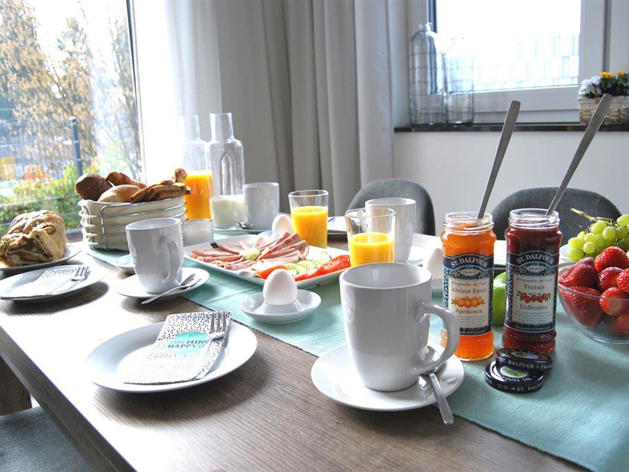 genießen Sie das Frühstück auf Ihrer Sonnenterrasse mit Panoramablick. Der private Garten ist eingezäunt und somit ideal für Haustiere!