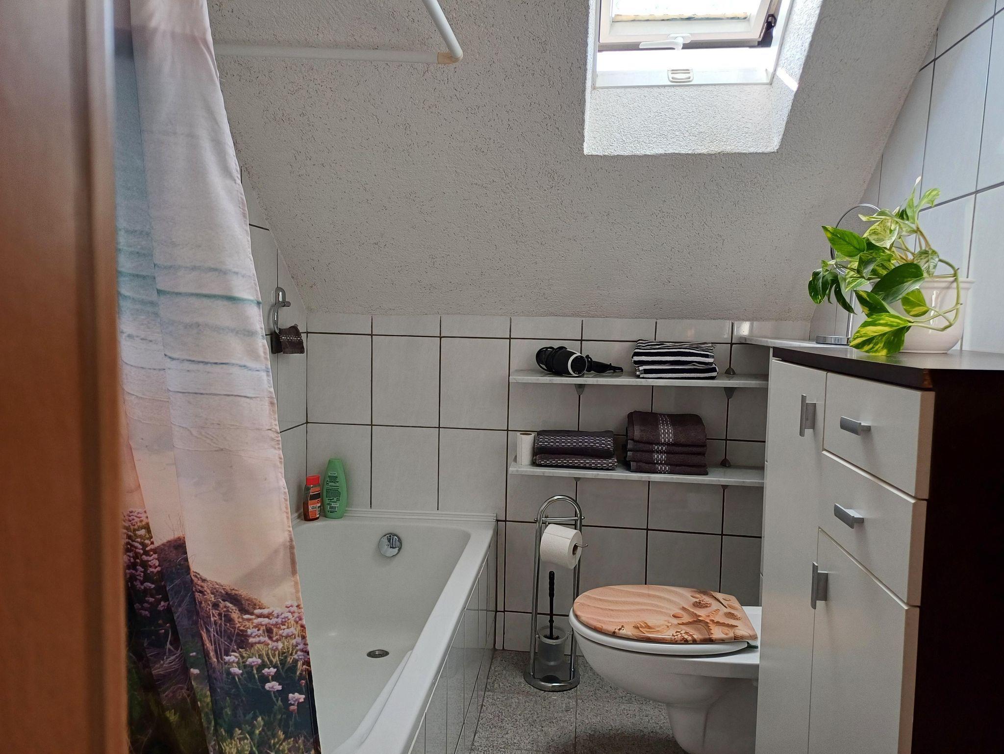 Die gemütliche Dachgeschosswohnung (77 m²) befindet sich im OG eines 2-Familienhauses und bietet Platz für 1-4 Personen. Die komplett ausgestattete Küche lässt keine Wünsche offen. Im großzügigen Wohnessbereich befindet sich eine Essgruppe, Eck-Couch, Satelliten-TV und DVD-Player. Es sind zwei große separate Schlafzimmer vorhanden. Das Badezimmer verfügt über eine Badewanne mit Duschfunktion und ein WC. Entspannte Abende können Sie auf dem kleinen Südwest Balkon ausklingen lassen.