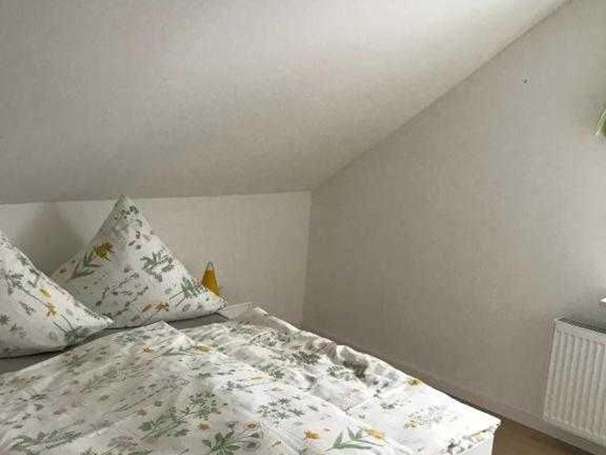 Die Wohnung liegt im Dachgeschoss und ist über ein gemeinsames Treppenhaus erreichbar.