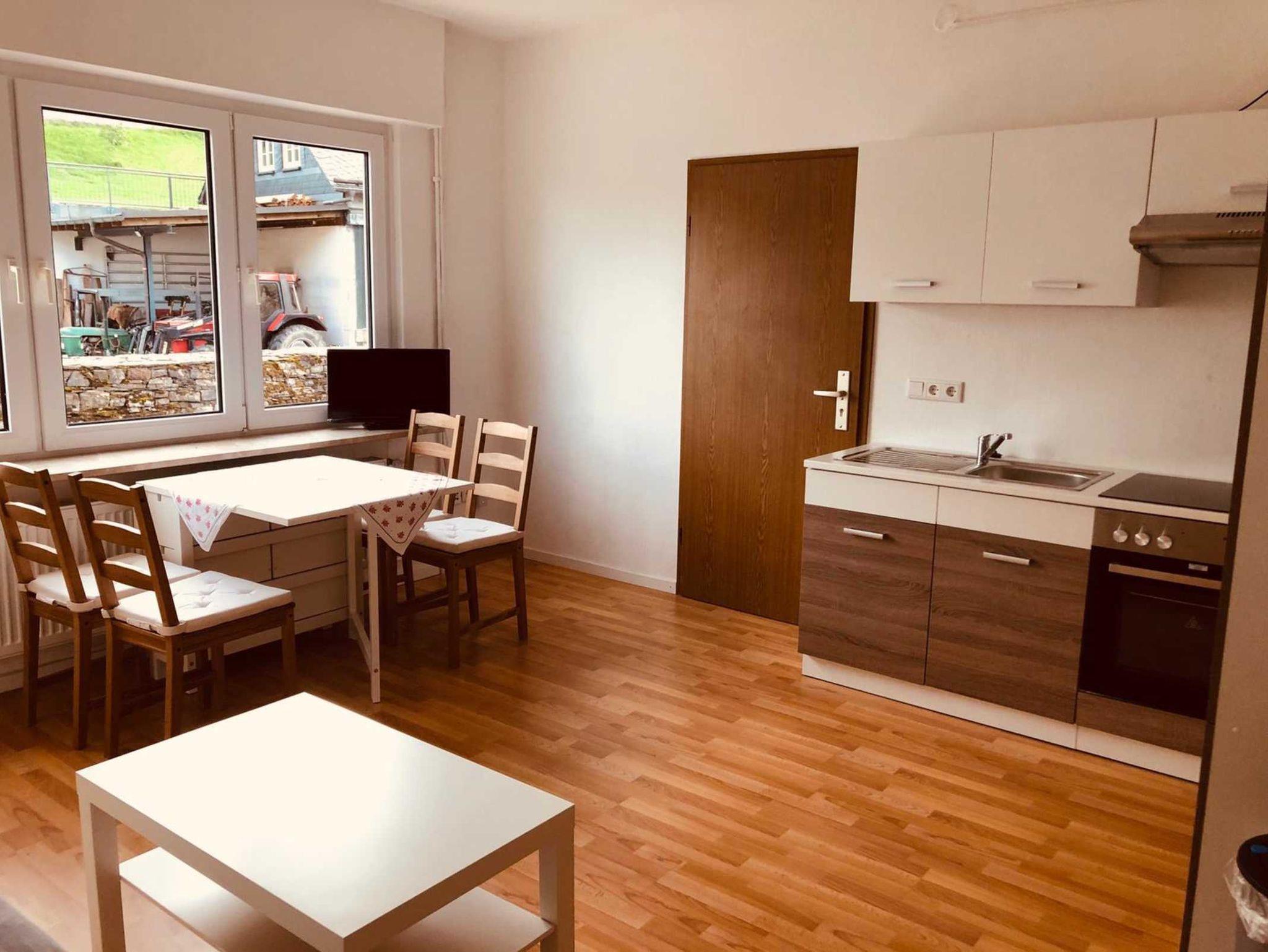 Die Wohnung liegt in einem Mehrparteienhaus mitten im Altstadtkern von Eversberg.